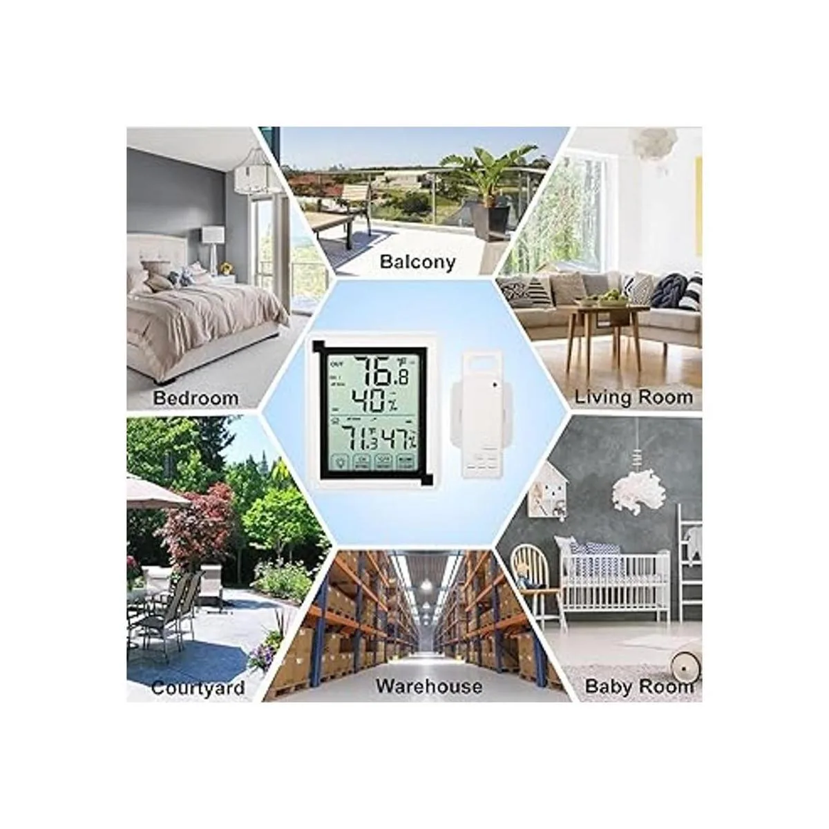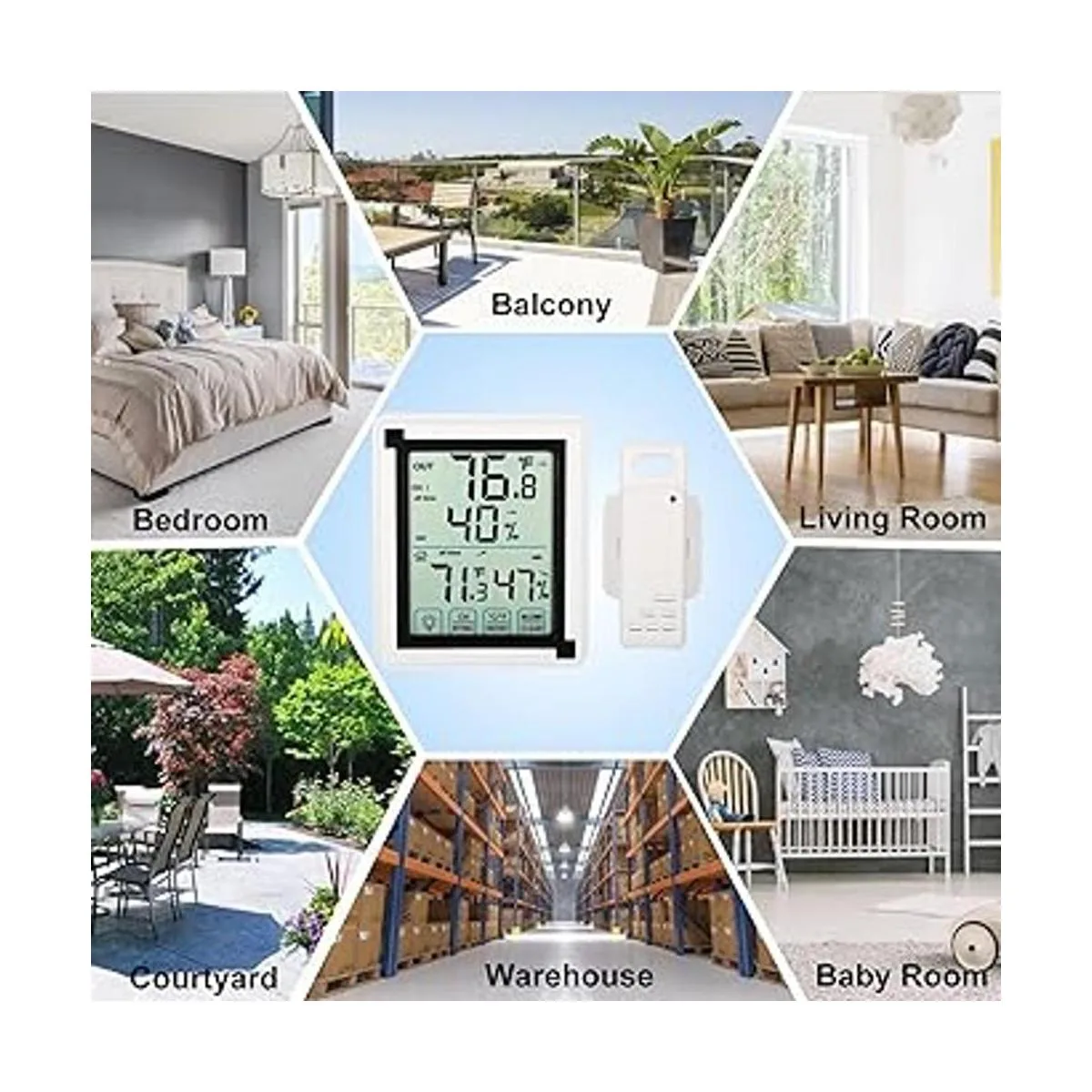 inhuhoo Termómetro para interiores y exteriores con monitor de humedad, higrómetro digital inalámbrico con pantalla táctil LCD, resistente al frío, rango de 196.9 ft, pantalla grande, para el hogar, oficina, invernadero