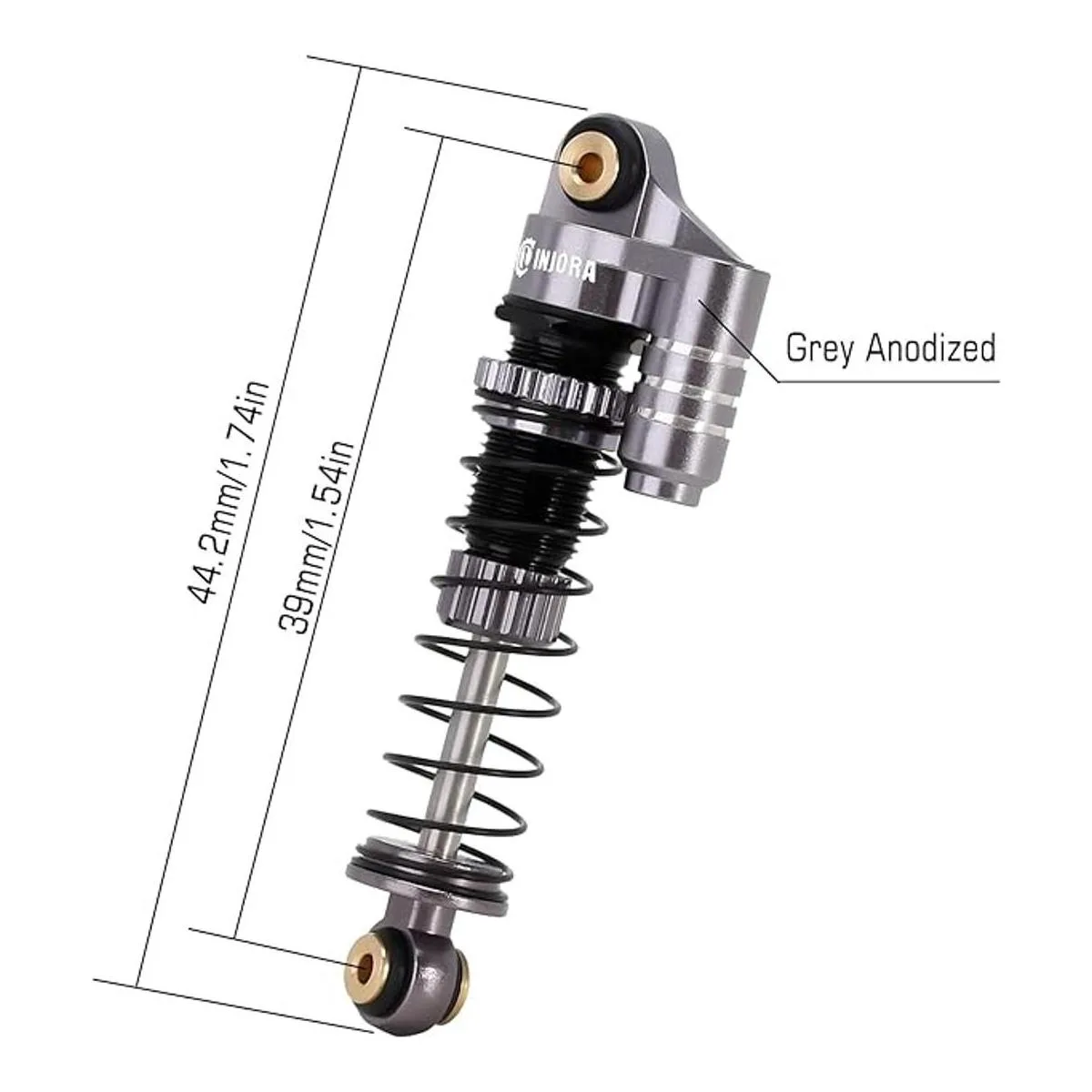 INJORA Amortiguadores de 1.535 in, amortiguador de aceite ajustable roscado de aluminio para SCX24 Gladiator C10 JLU Cerrojo de seguridad B17 Axial 124 RC Crawler Car Piezas de actualización gris