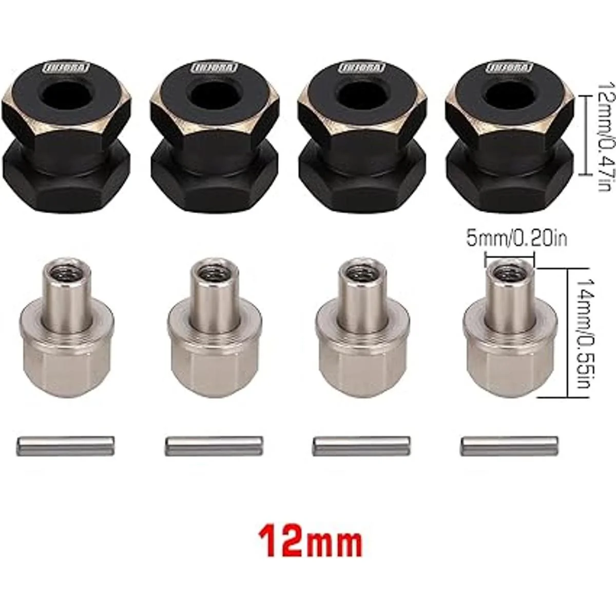 INJORA Hub hexagonal RC de 0.472 in con ruedas de latón hexagonal, adaptador de unidad hexagonal negro para 110 RC Crawler Axial SCX10 90046 D90 0.472 in