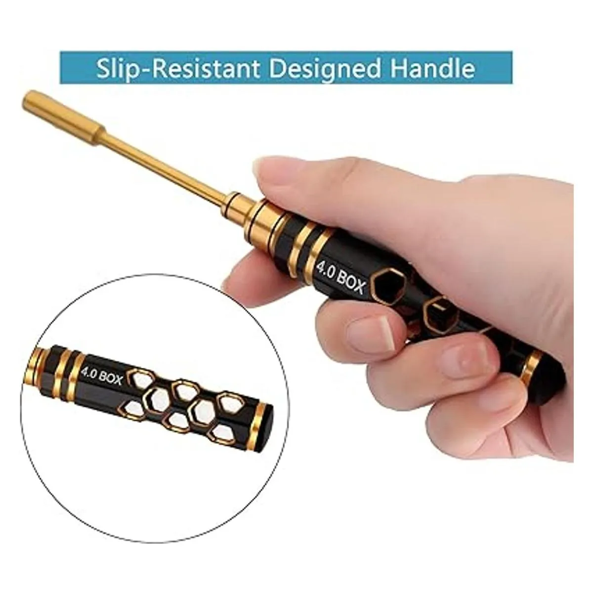 El paquete incluye: este juego de llaves de tuerca hexagonales incluye 4 destornilladores de tuerca hexagonal caja de 4.0, caja de 5.5, caja de 7.0, caja de 8.0, y está empaquetado dentro de una caja acolchada de espuma para una fácil gestión y almacenamiento.