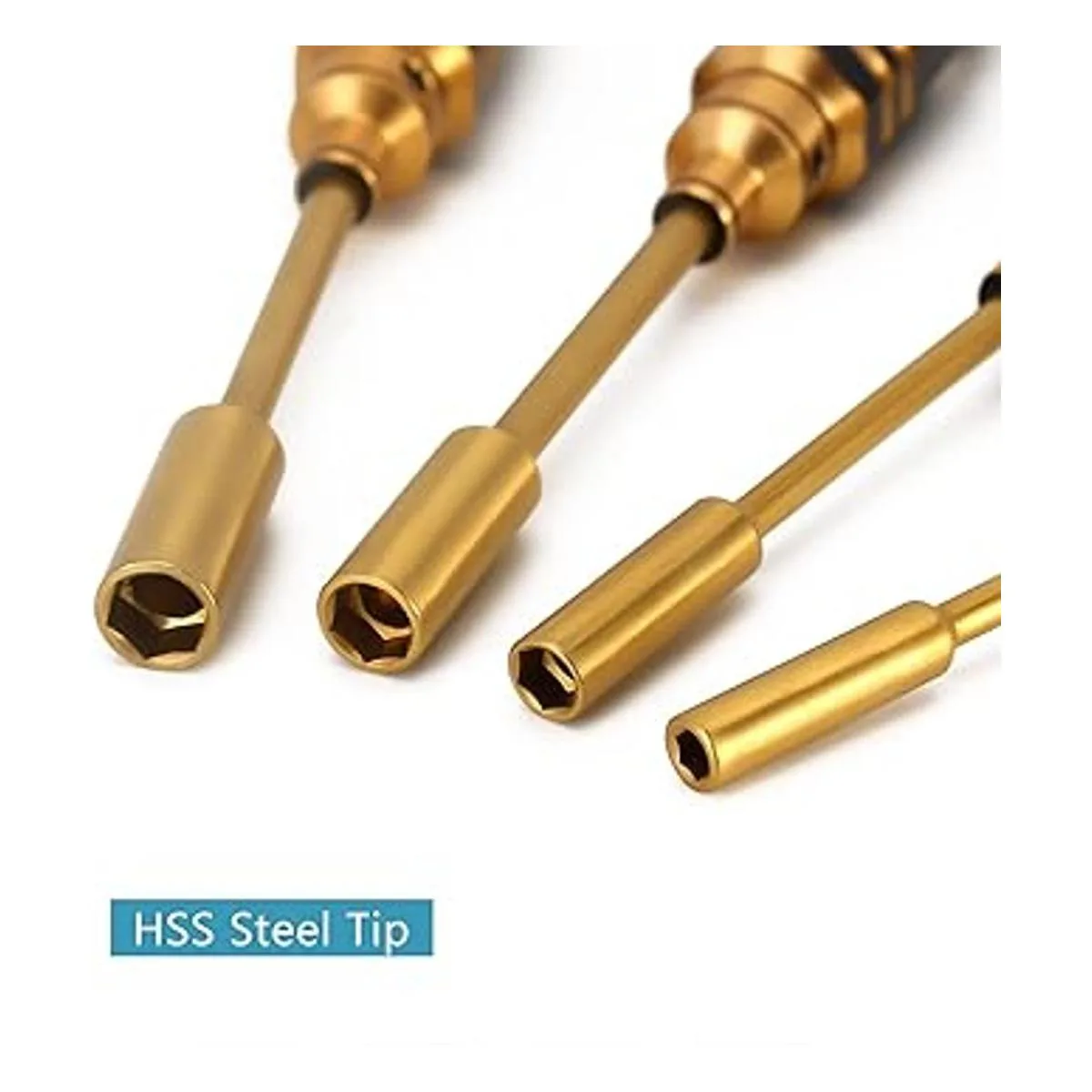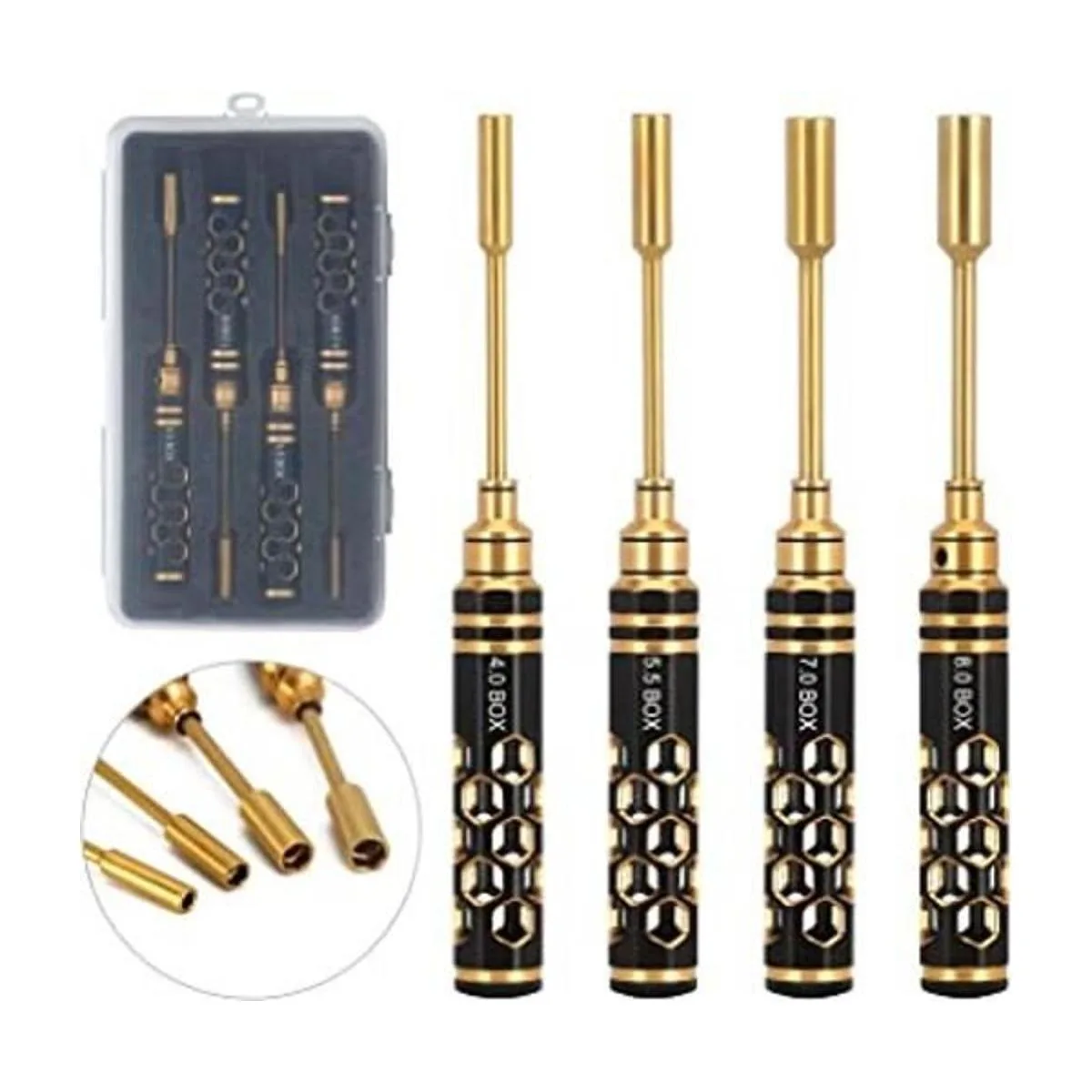 INJORA Juego de 4 destornilladores de tuerca hexagonal RC de 0.157 in, 0.217 in, 0.276 in, 0.315 in, llaves de destornillador de tuerca hexagonal, destornillador de zócalo, kit de herramientas de reparación de automóviles RC para modelo RC y helicóptero de barco
