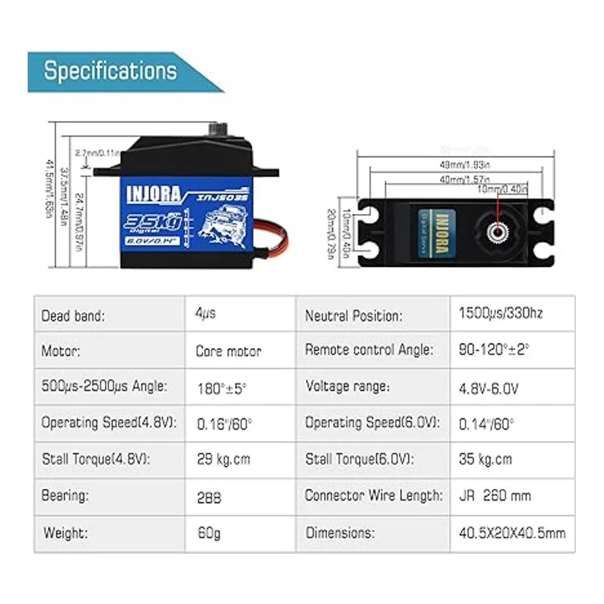 INJORA Servo RC Servo digital de 77.2 lbs de alto par de piezas RC servomotores para 110 RC Crawler SCX10 TRX4 D90 ángulo de control 90180