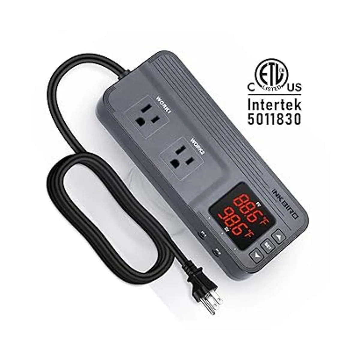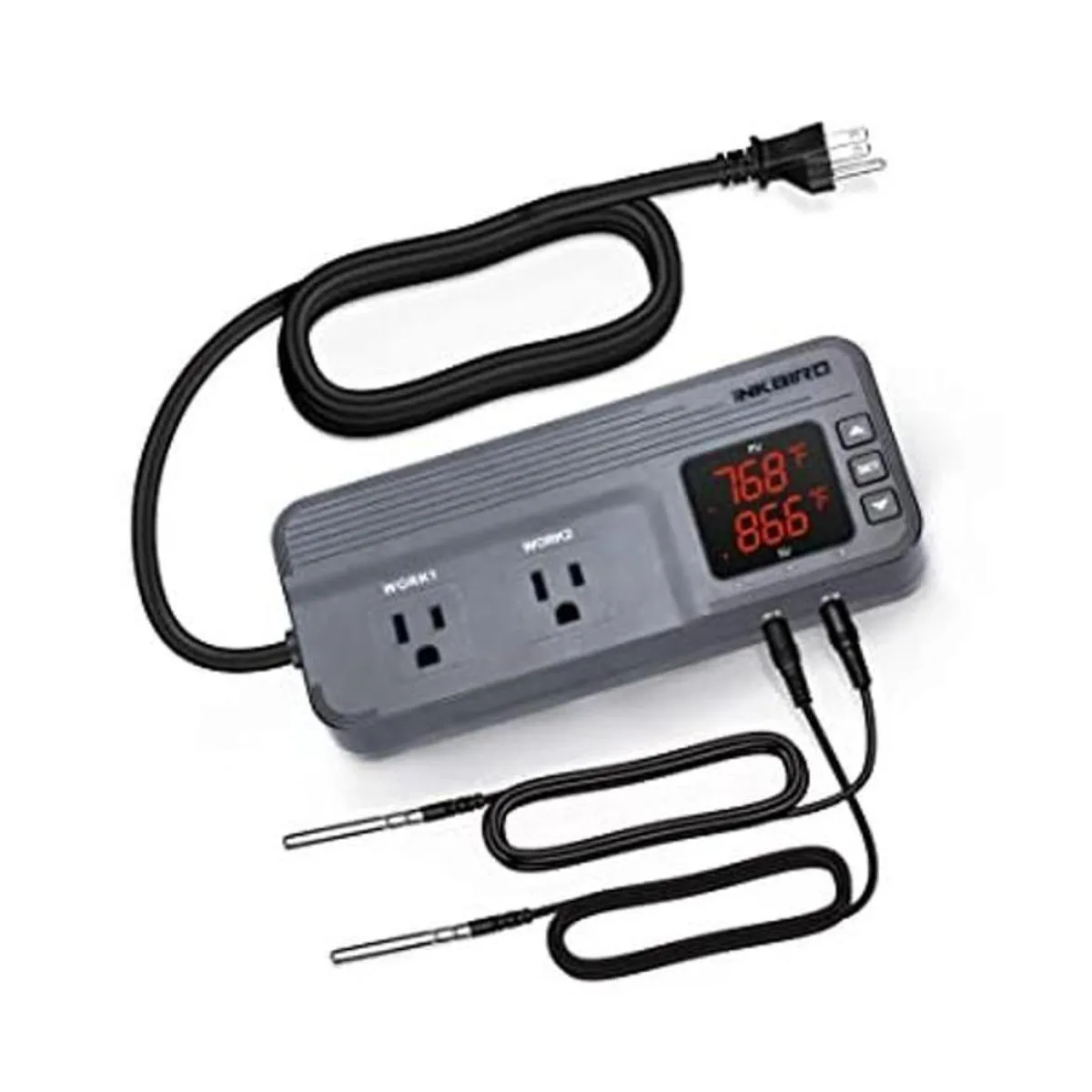 Inkbird ITC608T controlador de temperatura con sensor de temperatura dual AC Dual Stage Outlet termostato con 12 períodos de tiempo etapa 1800W ETL listado