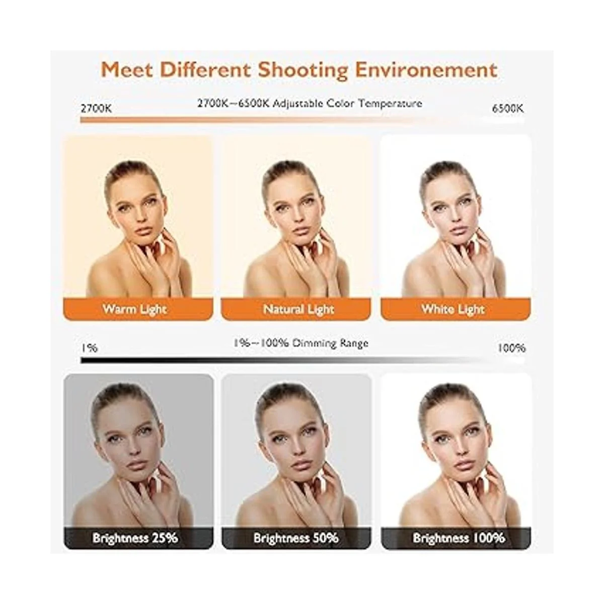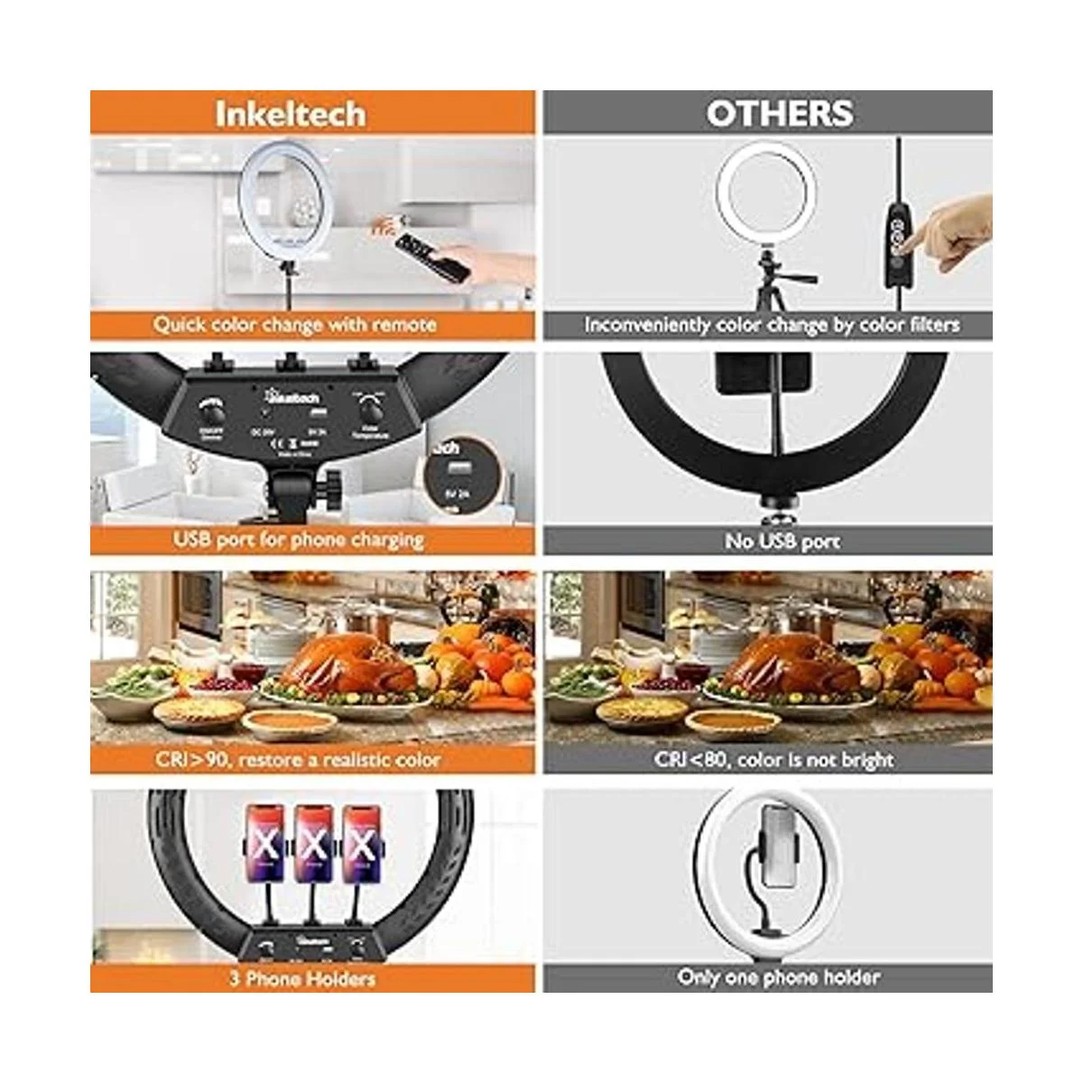 Cambio de color inteligente y rápido: el anillo de luz INKELTECH puede ajustar la temperatura de color a través de la perilla o el control remoto sin utilizar filtros de color. Logra luz blanca fría o luz cálida para ocultar imperfecciones y cambiar los tonos de piel rápida y fácilmente. El diseño LED SMD y 240 cuentas LED en nuestra luz circular ofrece más luz para tu fotografía de cámara, transmisión en vivo, maquillaje de belleza, selfies y videos.