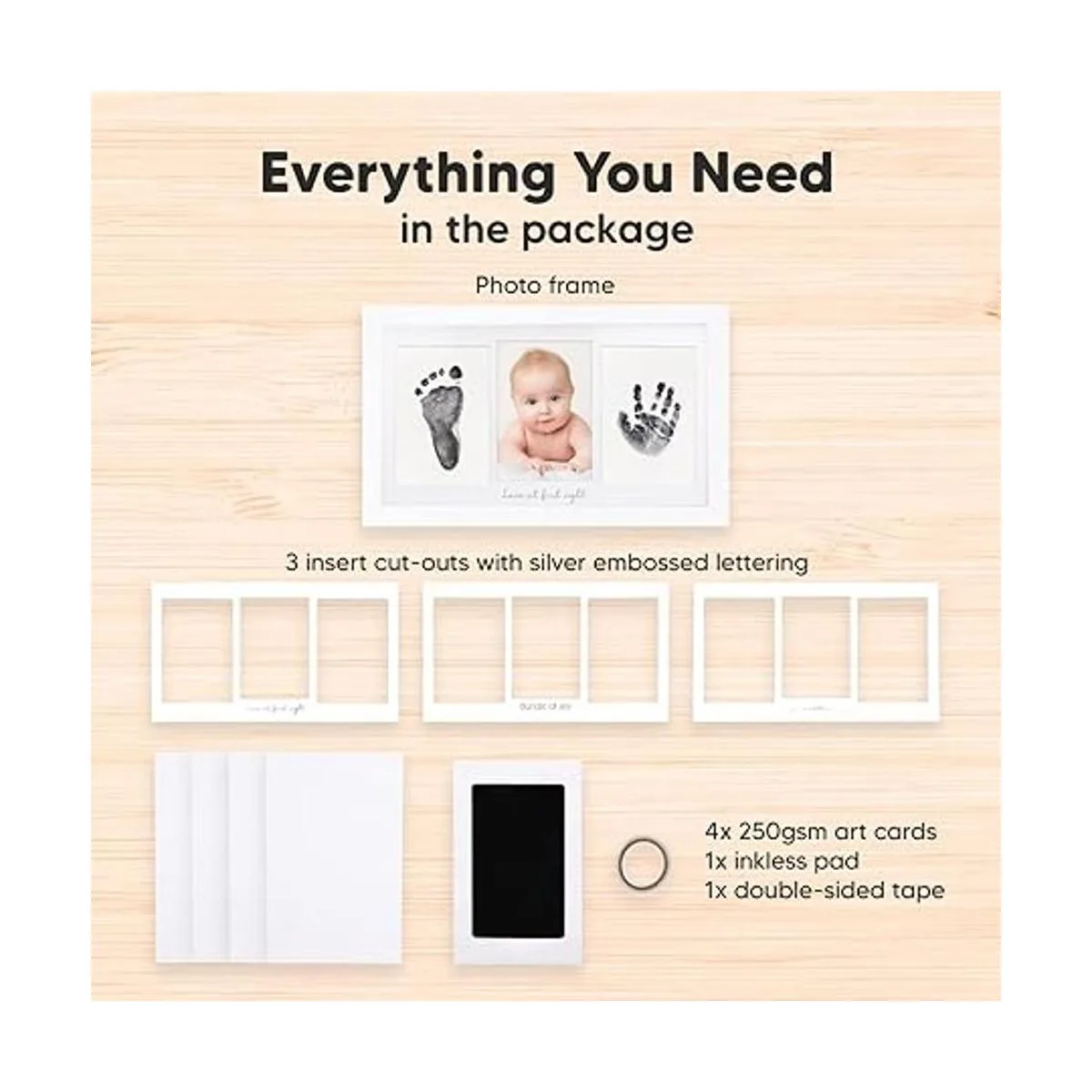 Inkless Marco de fotos de bebé para recién nacido, marco de fotos para bebé sin desorden, recuerdo de bebé, kit de huellas de bebé, regalo de baby shower (blanco alpino)