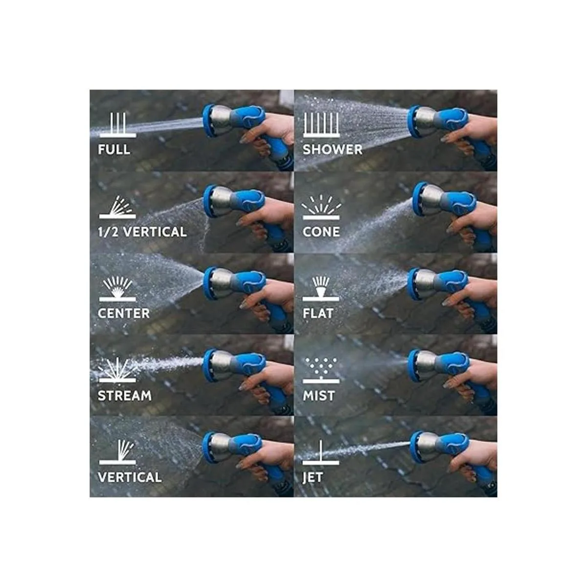 10 patrones de riego: ya sea que necesites un chorro de alta presión para limpiar una superficie dura o una ducha suave y delicada para regar el jardín, esta boquilla te tiene cubierto. Tiene opciones de patrón de pulverización para cada necesidad de riego, incluyendo ventilador, niebla, remojo, chorro, y puedes cambiar el patrón fácilmente con un giro del disco de cabeza.