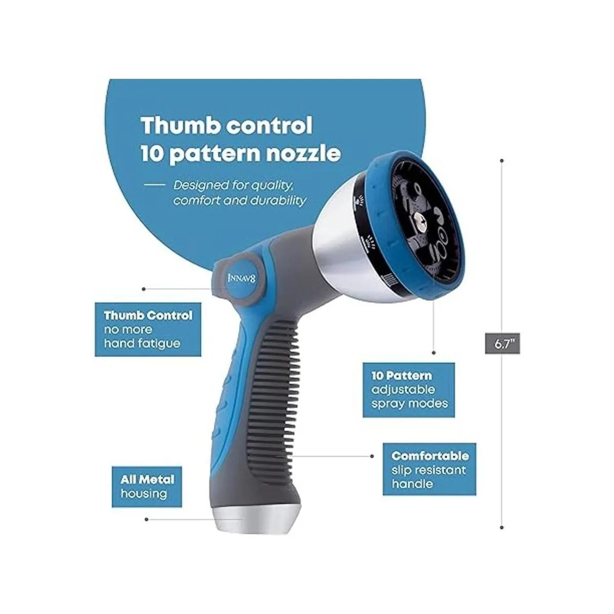 INNAV8 Pulverizador de boquilla de manguera de agua, cuenta con 10 patrones de pulverización, control de pulgar, válvula de encendido y apagado para un fácil control del agua, boquilla de manguera de jardín de alta presión para manguera de jardín