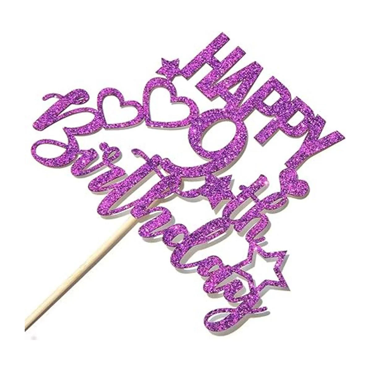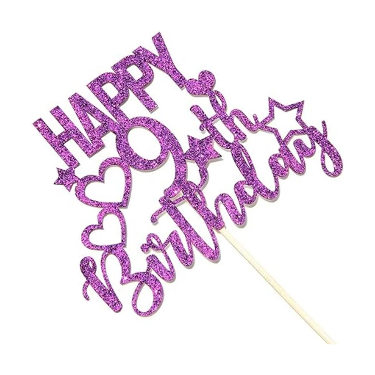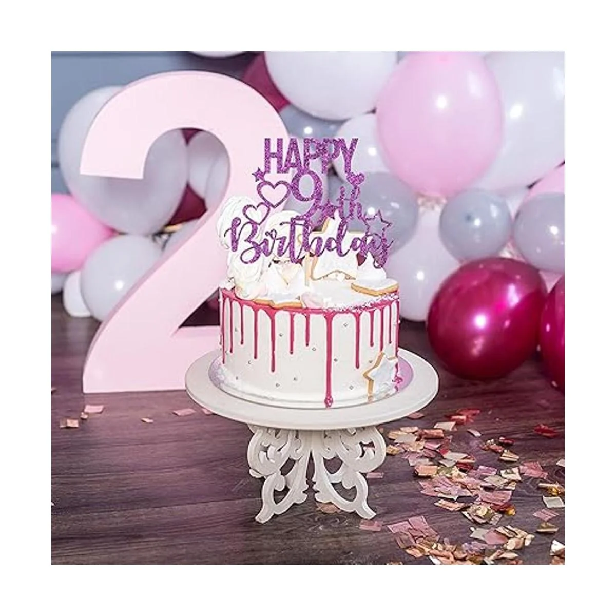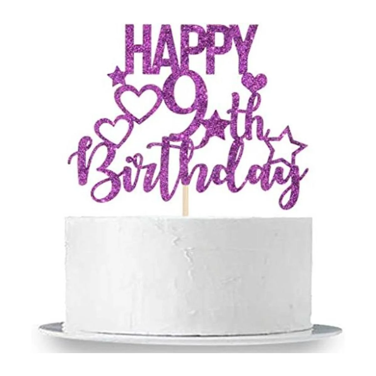 INNORU Decoración para tarta de cumpleaños para 9 años, color morado con purpurina