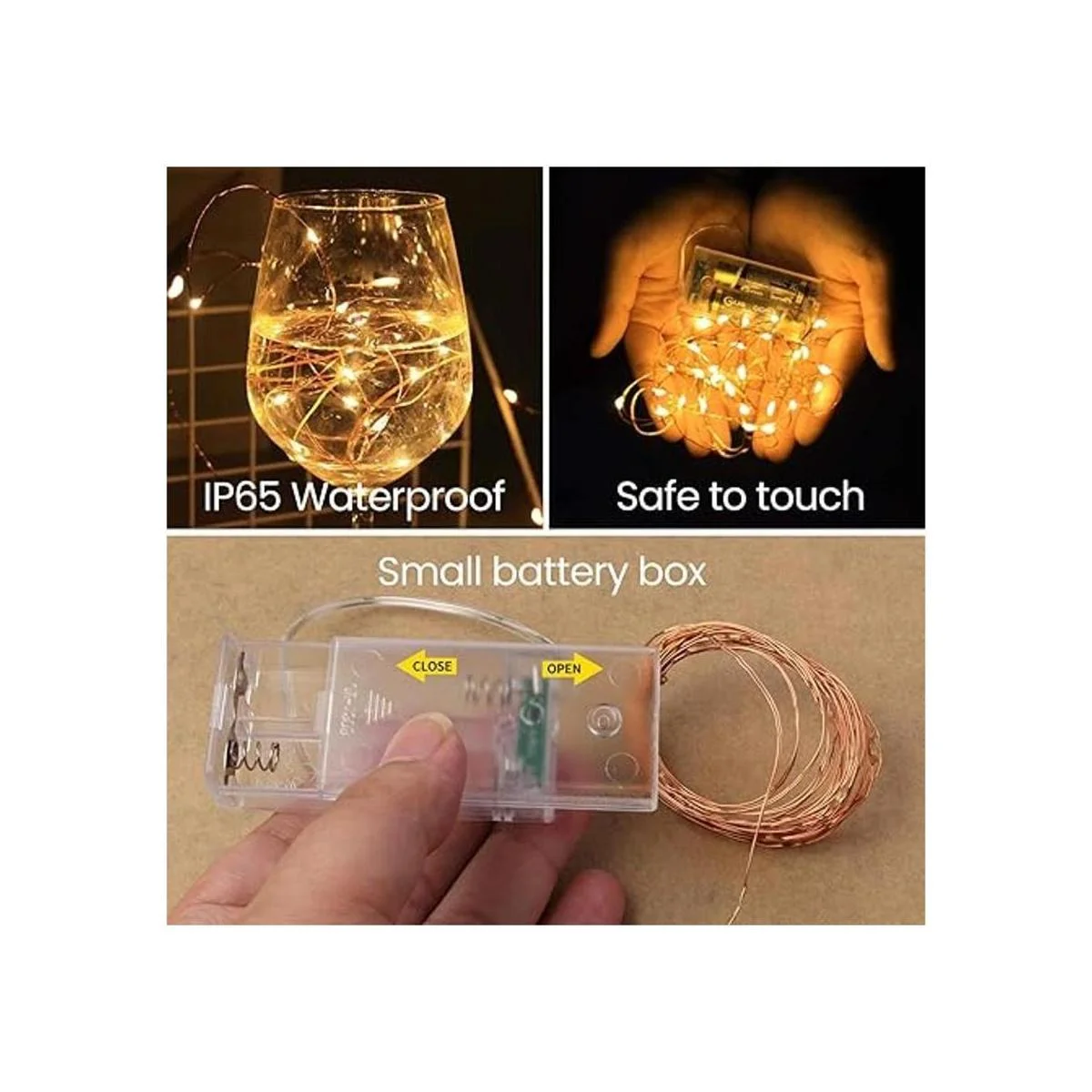 Seguro al tacto: el alambre de cobre aislado de bajo voltaje y calor no se sobrecalienta después de un uso prolongado, seguro al tacto incluso por los niños. IP65 impermeable hace que sea ideal para decoración de iluminación al aire libre.