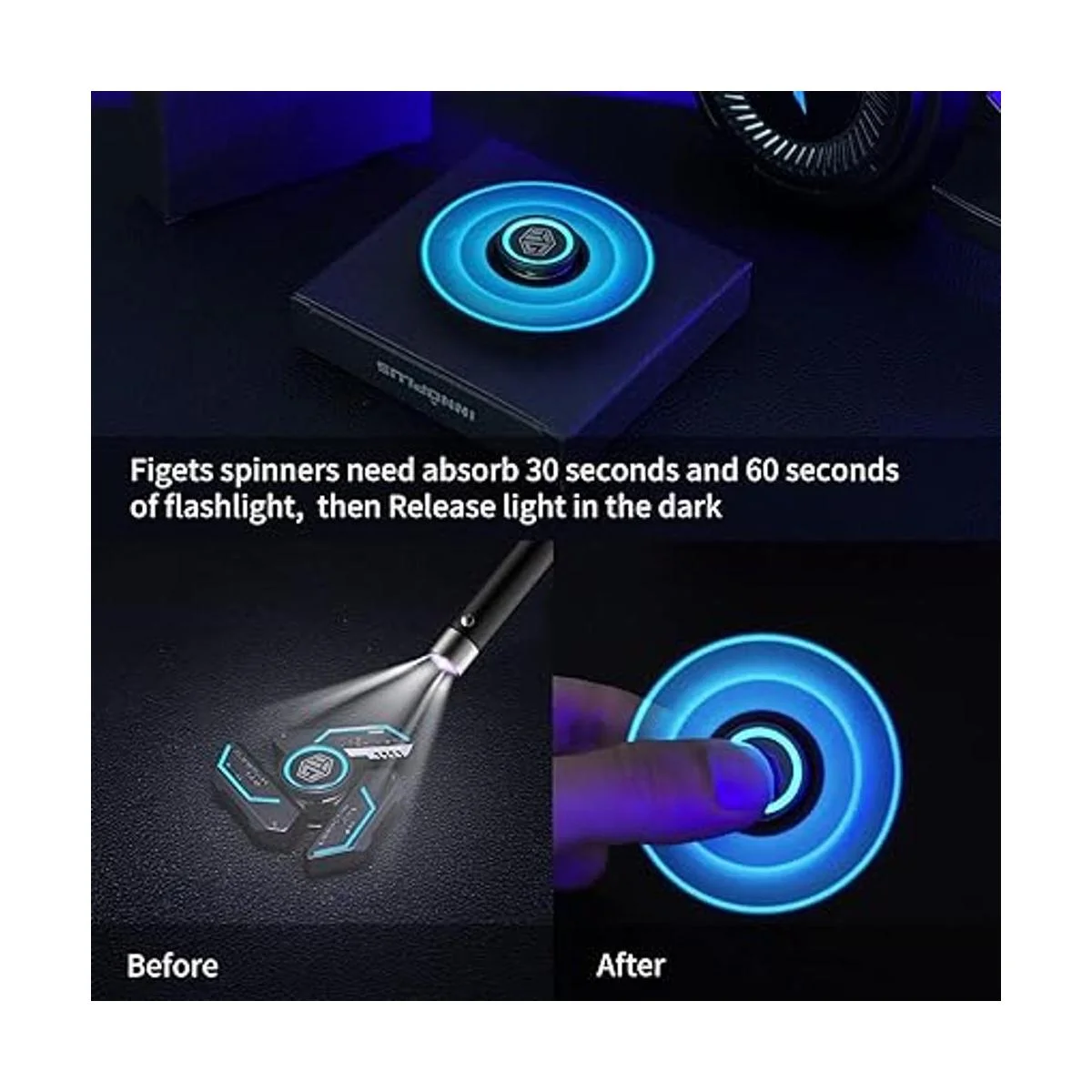 INNURE PLUS Spinners Fidget Spinners para niños, juguetes para la ansiedad, juguetes para niños, giratorio de metal con luz luminosa para aliviar el estrés, el spinner absorbe la luz y luego se libera en la oscuridad