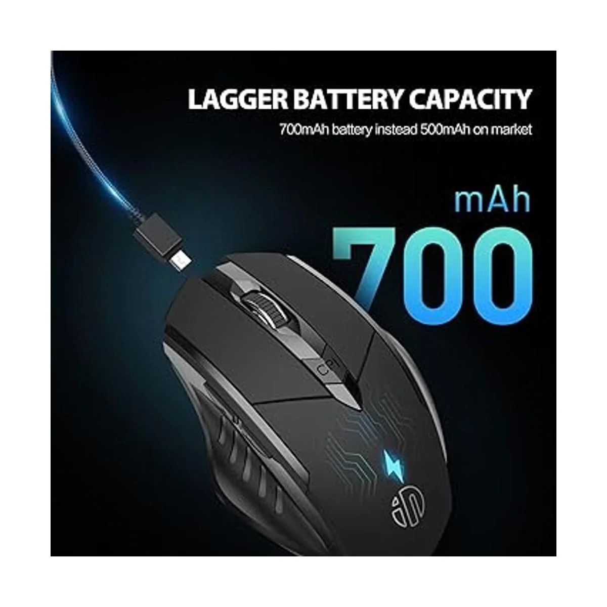 inphic mouse inalámbrico recargable, silencioso, mini mouse óptico ultrafino 1600 DPI para notebook, PC, laptop, computadora, MacBook plateado, Plateado