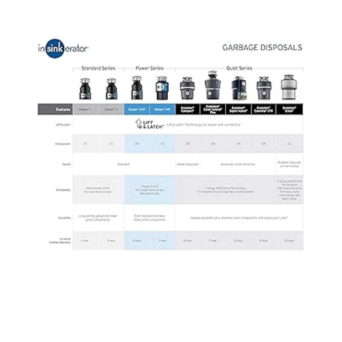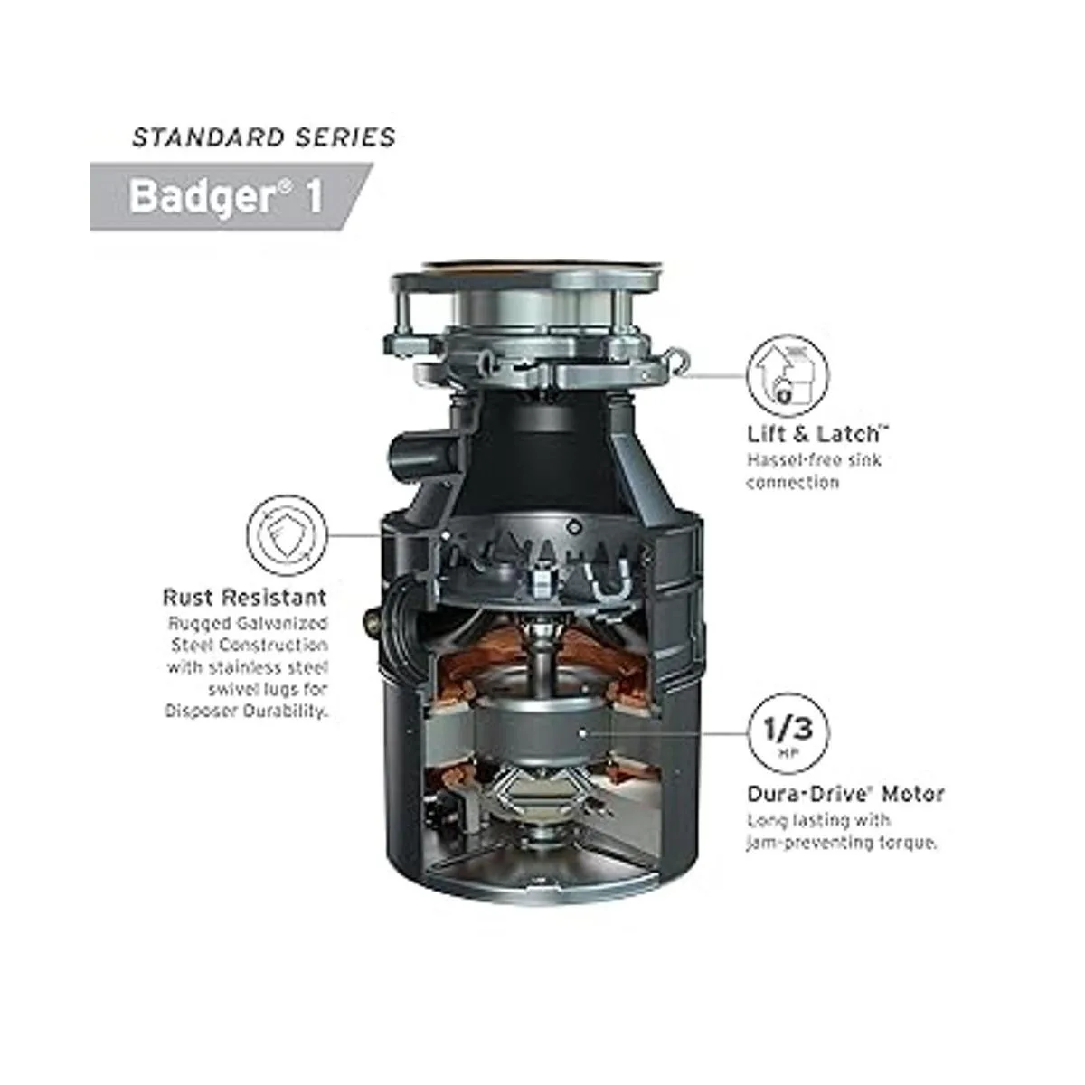 Insinkerator BADGER1CORD triturador de basura con cordón para el hogar, 13 caballos de fuerza, color gris
