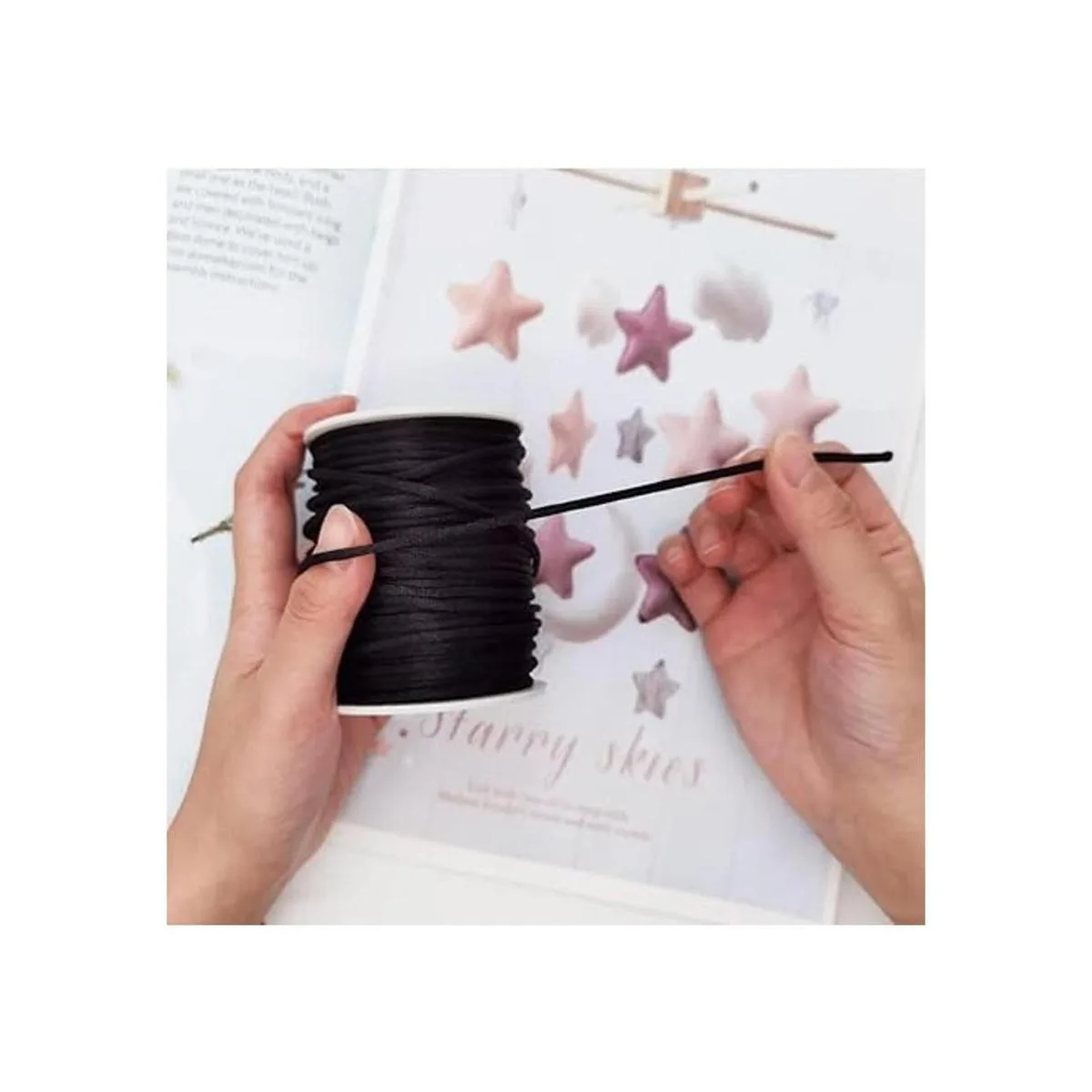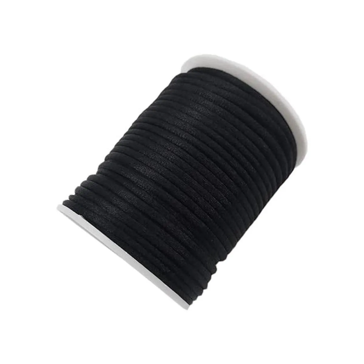 INSPIRELLE Cordón de satén negro de 0.11 pulgadas con cola de sonajero, hilo de nudo chino para hacer joyas, carrete de 50 yardas
