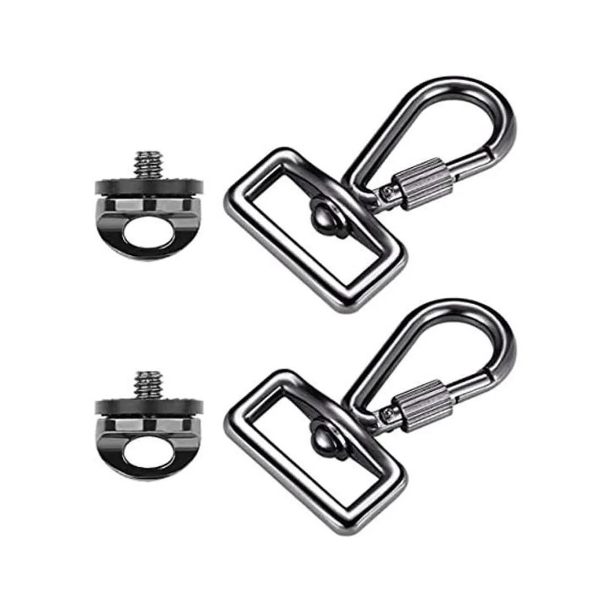 El paquete incluye: 2 tornillos para correa de hombro de fijación de cámara digital de 0.2 in; 2 ganchos negros de seguridad para interrogación de seguridad rápida, gancho para correa de hombro de disparo rápido para cámara SLR.