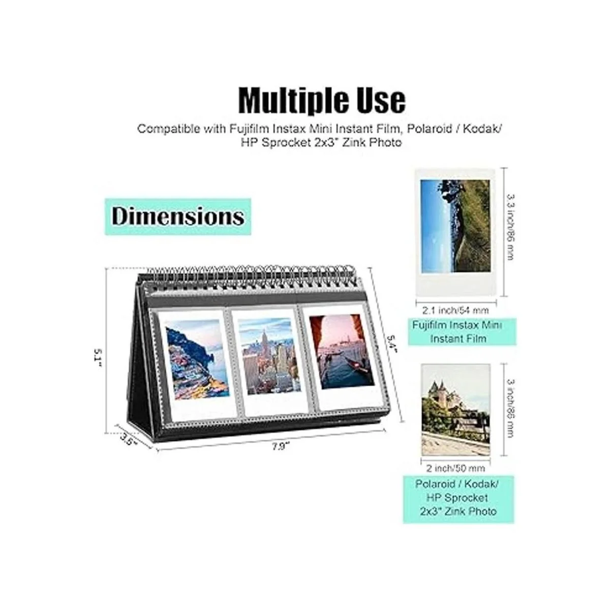 Compatible con: álbum de calendario de escritorio de pie compatible con películas tomadas por Fujifilm Instax Mini LiPlay 11 90 70 50S 26 25 9 8 8 7S Instax Flim Camera Mini LINK /Share SP1, cámaras instantáneas Polaroid Snap/Snap Touch e impresoras de fotos Mint y Zip.