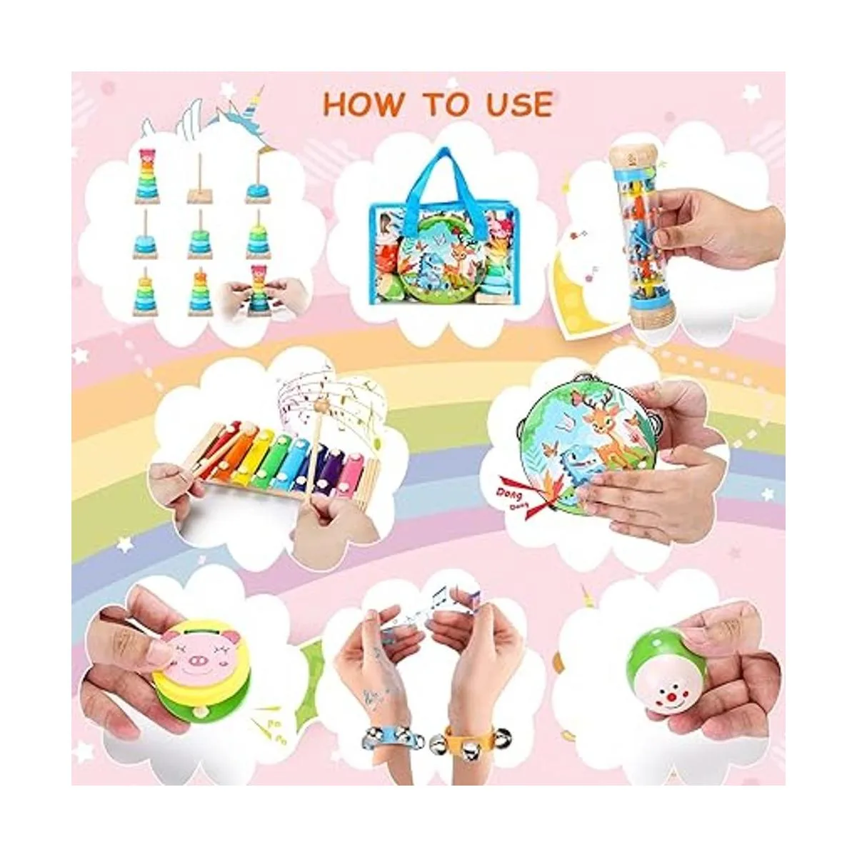 Todas las piezas de instrumentos para bebé de Oathx están hechas de madera duradera de la más alta calidad, material plástico no tóxico, acabado fino que garantiza una superficie lisa, buen pulido y tamaño compacto. Son juguetes de música seguros y confiables para niños de 3 a 5 años; tanto los niños como los jóvenes pueden disfrutar de nuestro juego de instrumentos para niños.