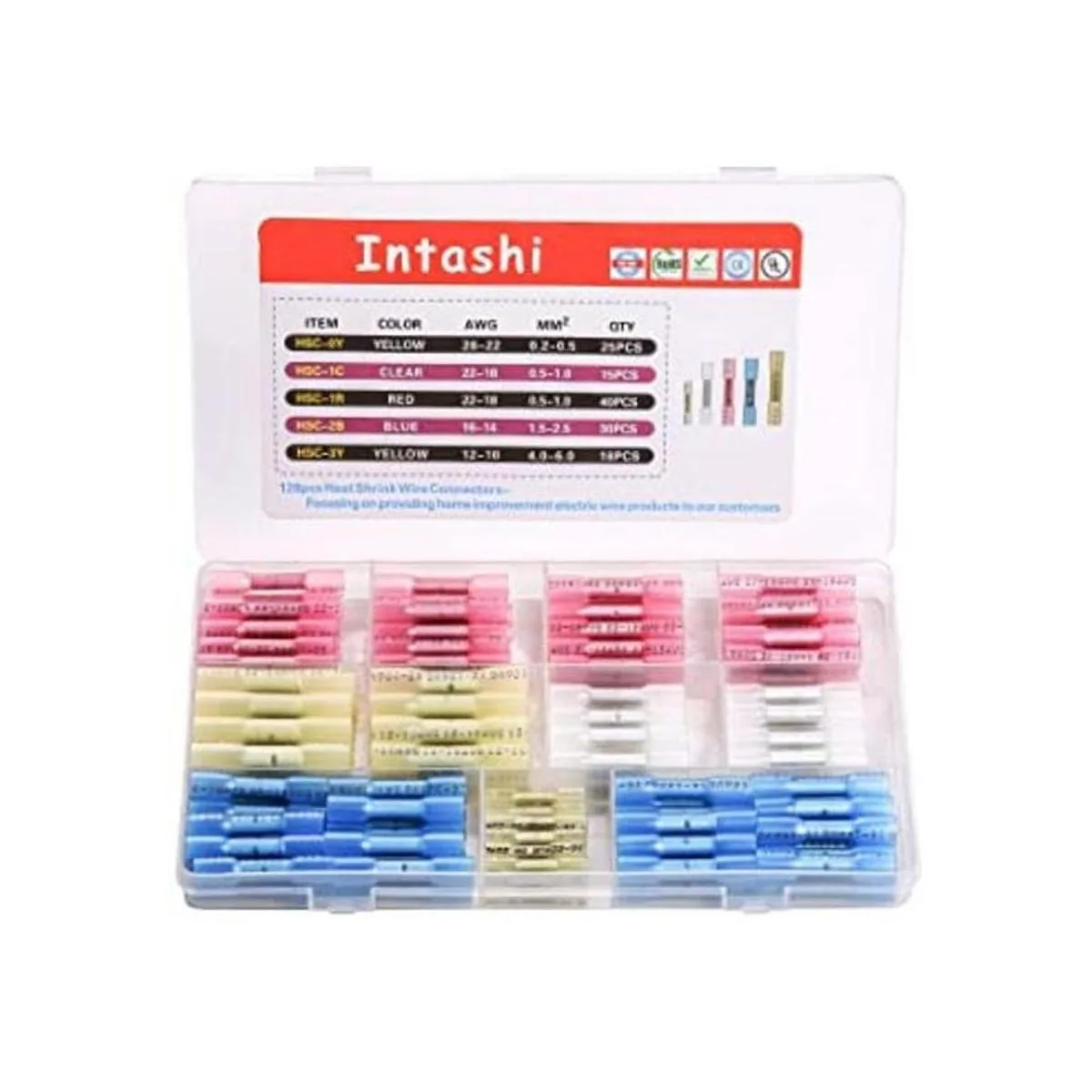Intashi Conectores de alambre termorretráctiles 128 conectores de alambre de sellado de soldadura, terminales de alambre impermeables aislados, conectores de extremo eléctricos para junta de alambre de camión automotriz marina