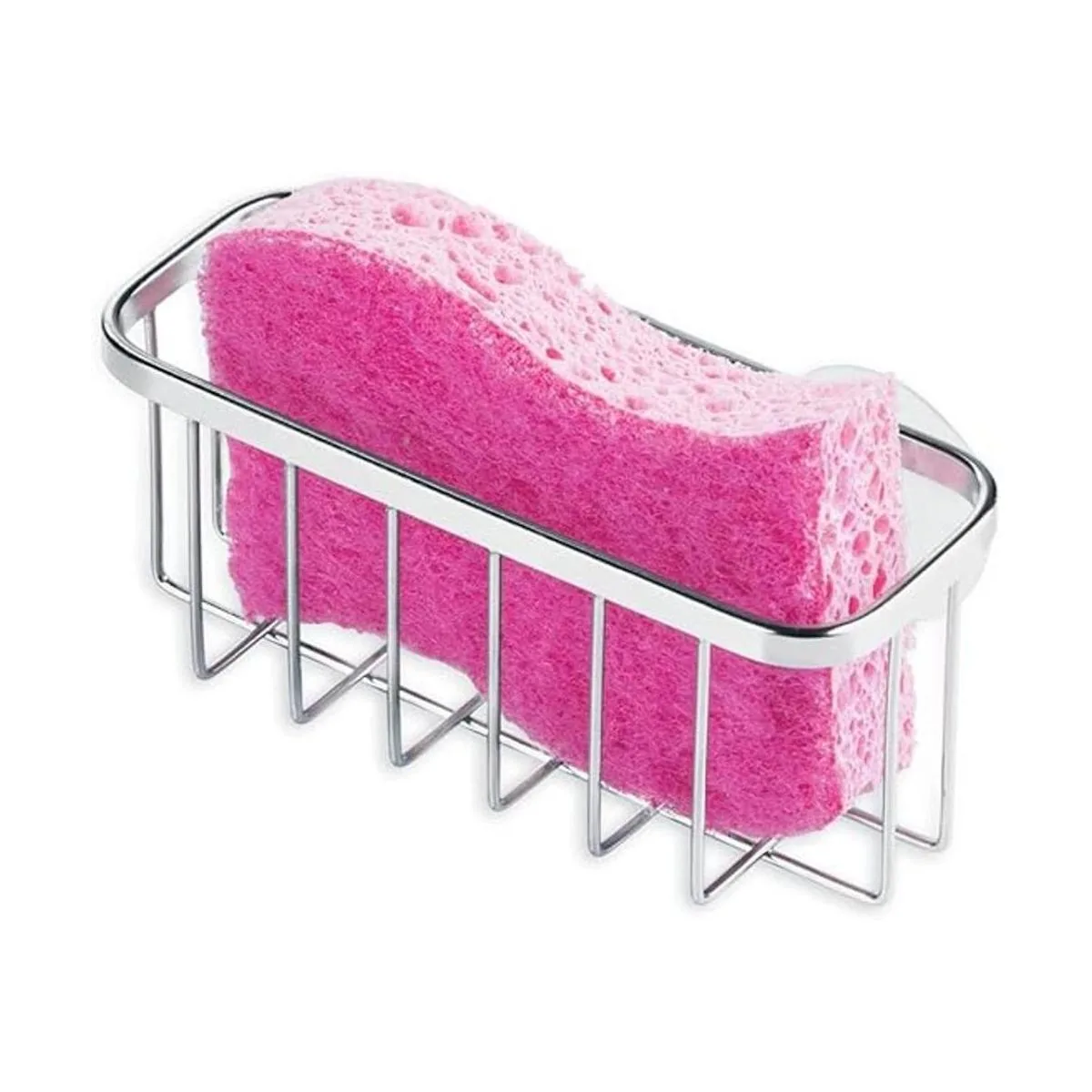 KITCHEN SPONGE HOLDER The iDesign Gia Stainless Steel Kitchen Sink Caddy keeps cleaning supplies such as bar soap, sponges, scrub brushes, and more off the countertop and within reach. Its also great for organizing the bathroom.