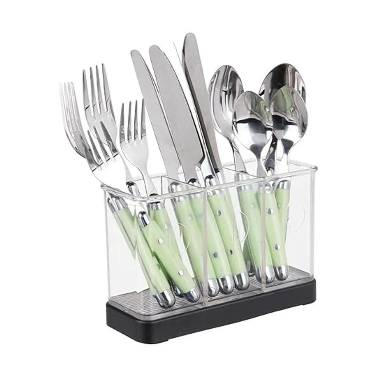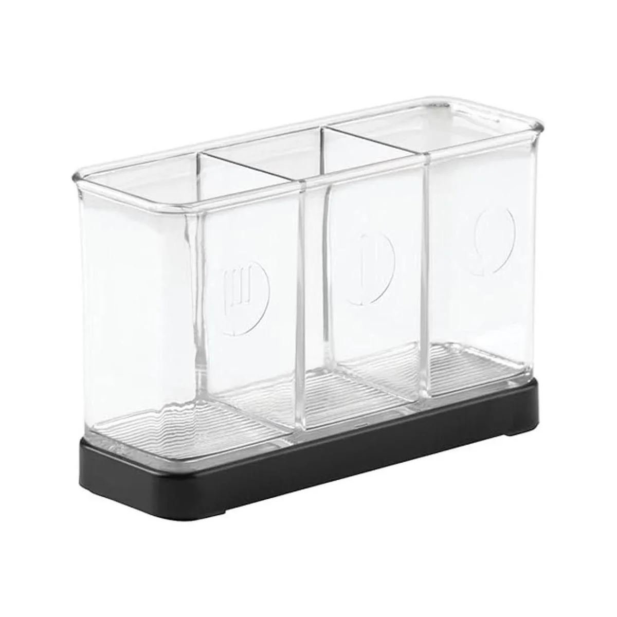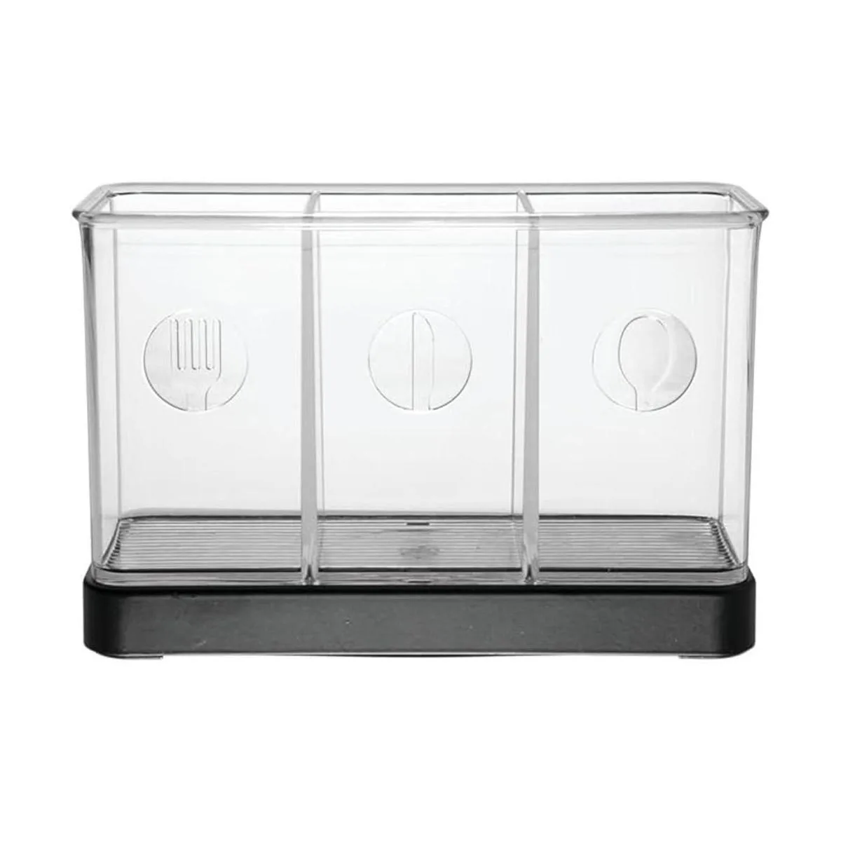 Organizador decorativo de planos: tres compartimentos etiquetados proporcionan almacenamiento y organización para tenedores, cuchillos y cucharas en la encimera de la cocina