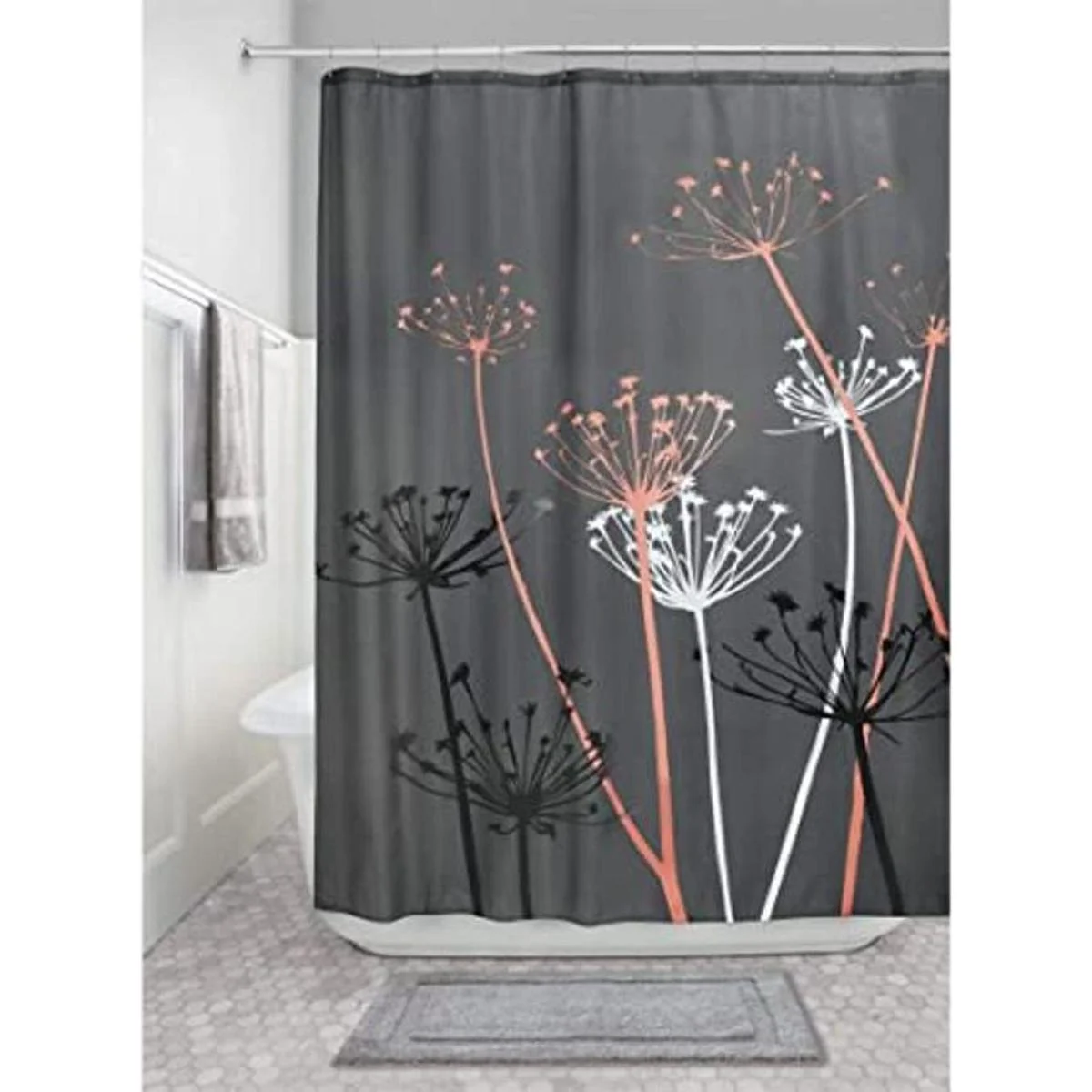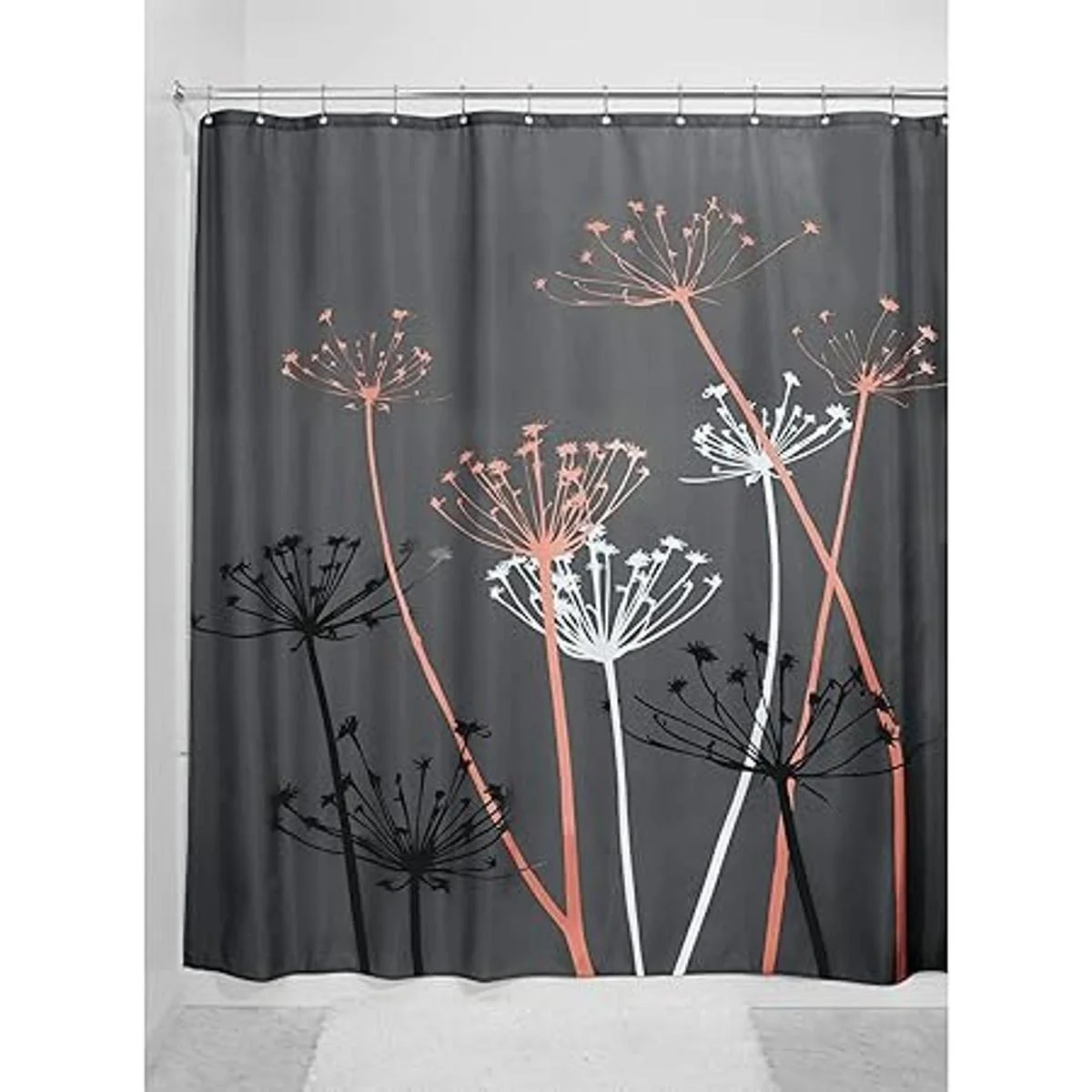 InterDesign Thistle Cortina de ducha, Poliéster 100 poliéster, Gris y coral, 72 pulgadas por 72 pulgadas