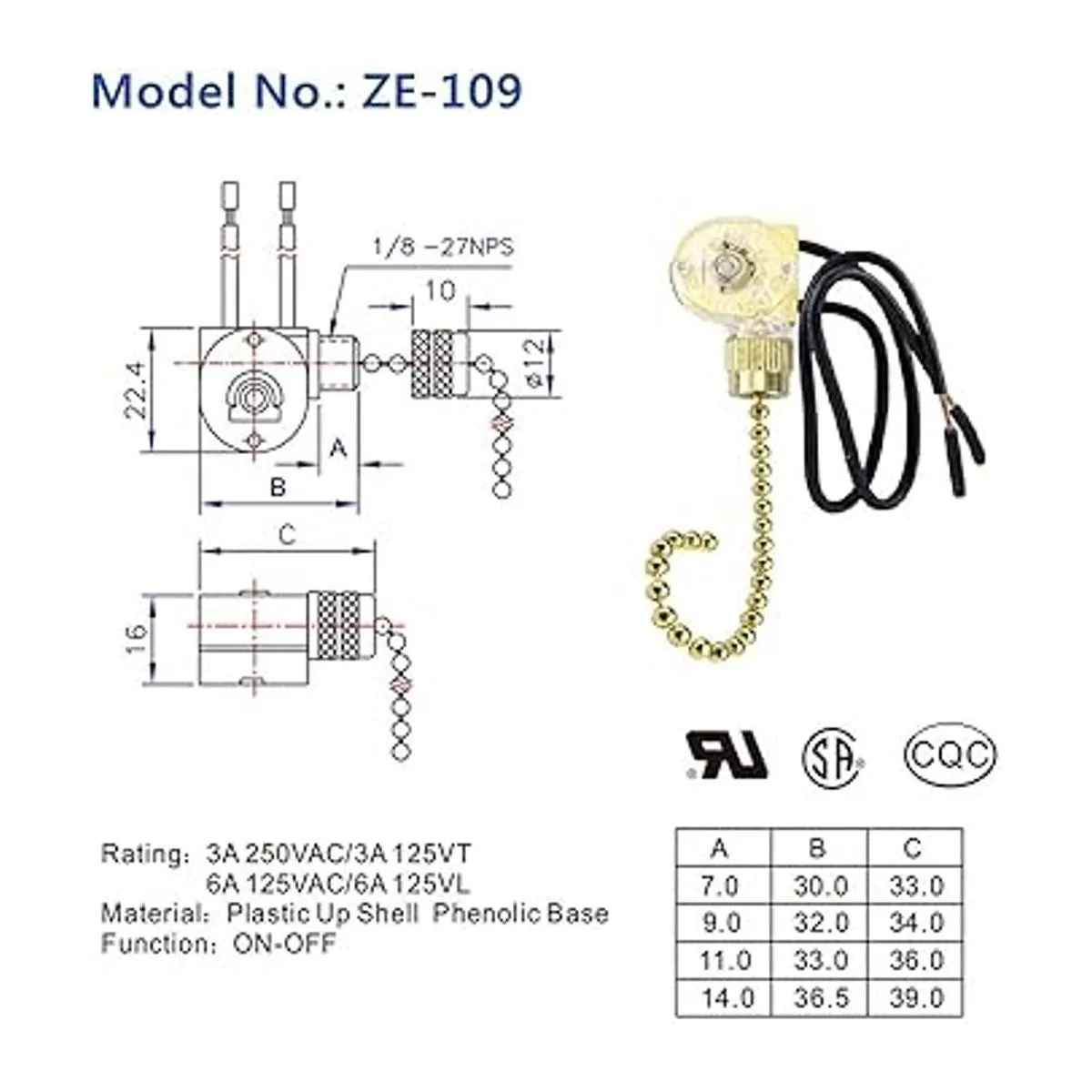 Interruptor de dos cables, compatible con la mayoría de ventiladores de techo o luces de ventilador.
