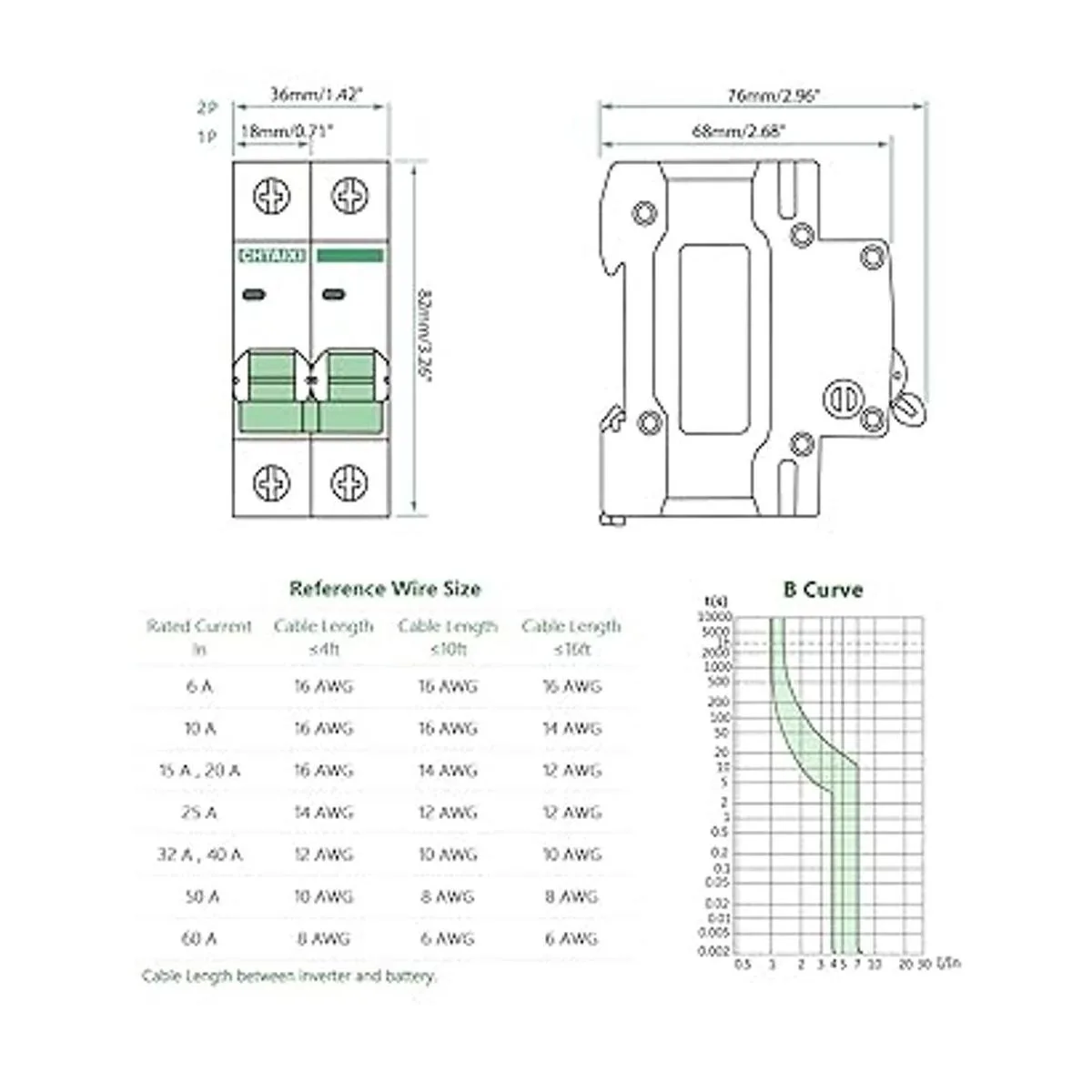 Interruptor de circuito miniatura de 12 V110 V CC, protector de disyuntor de batería de 20 amperios y 1 poste para sistema solar fotovoltaico y RV, viaje magnético térmico, montaje en riel DINsuperficie, interruptor de desconexión de CC Chtaixi B20