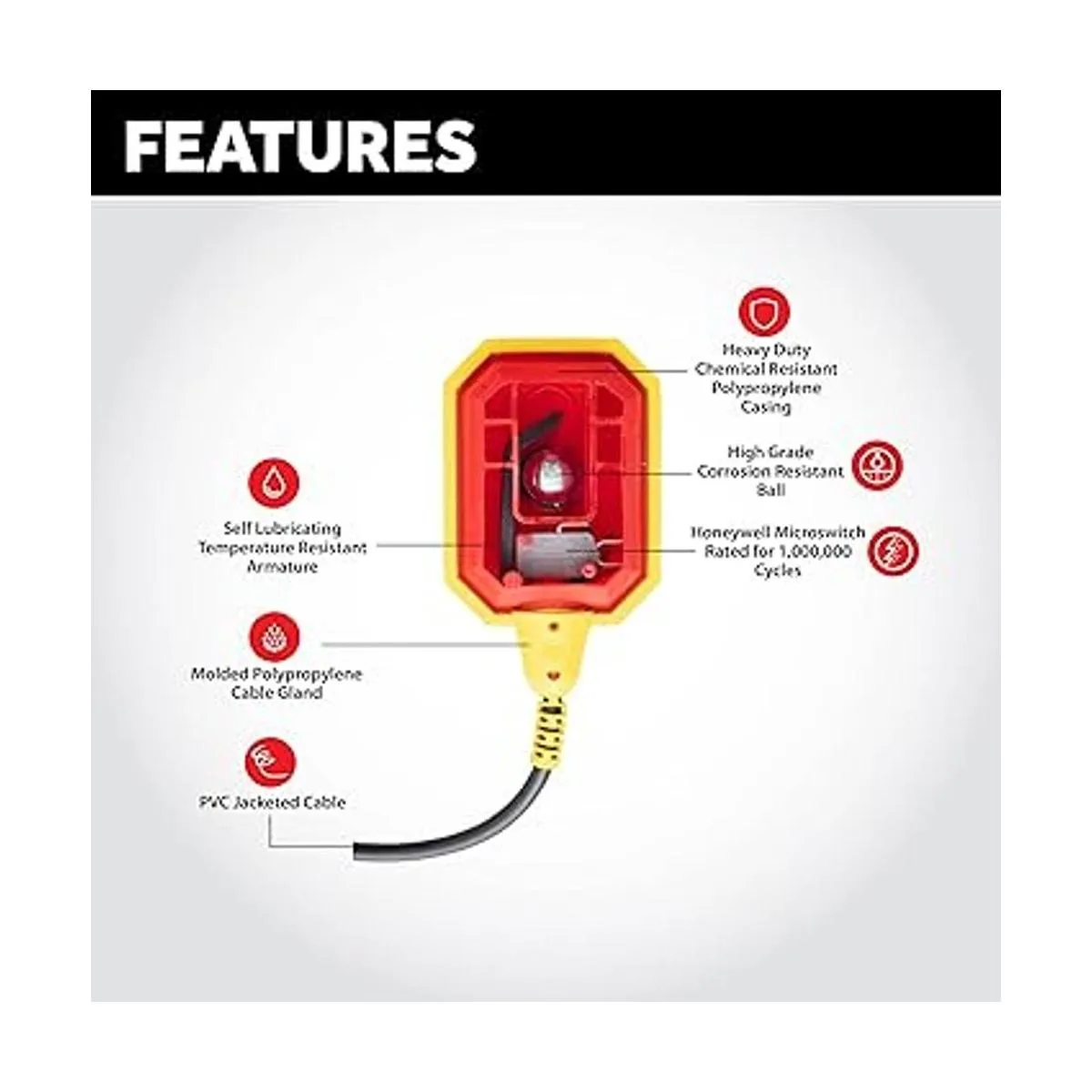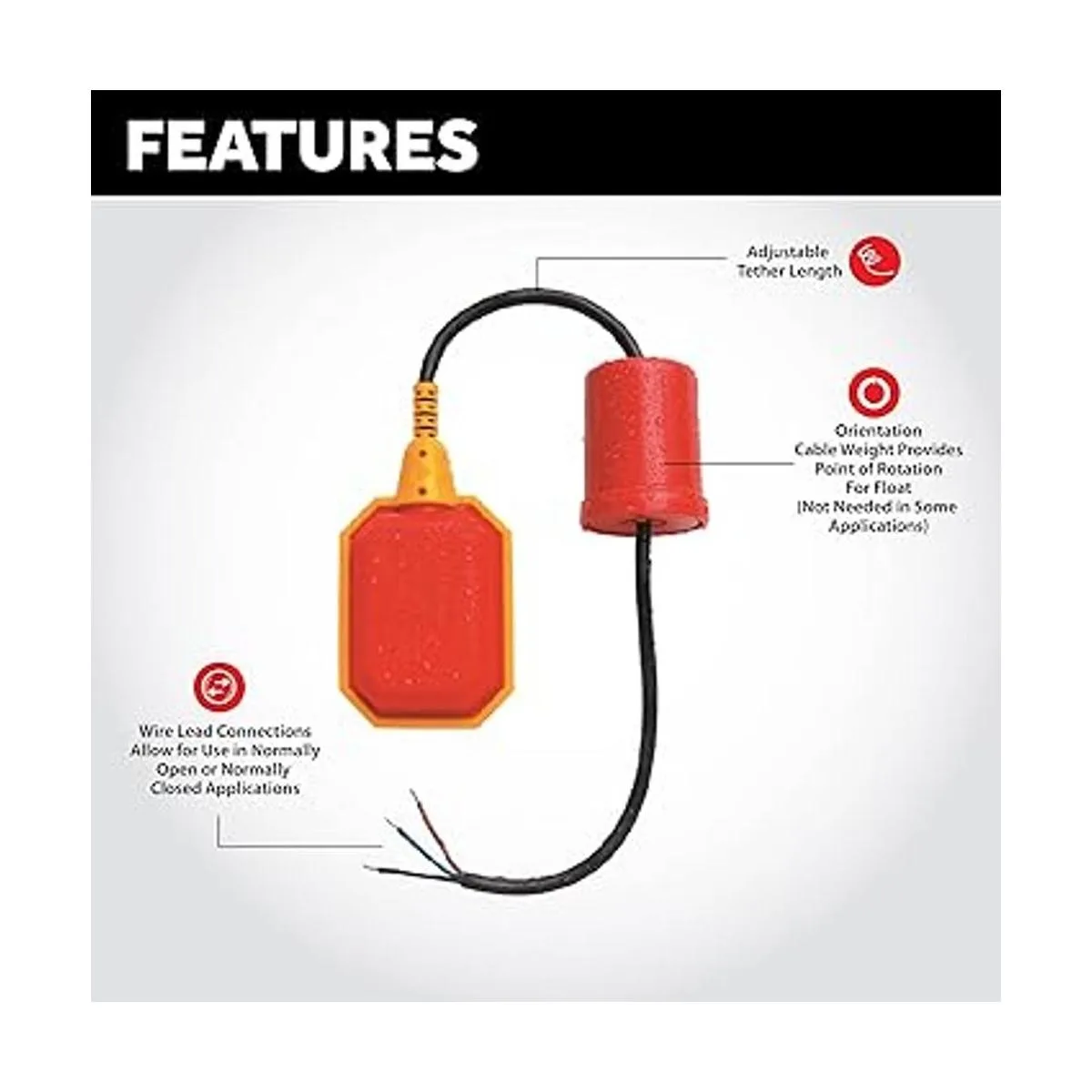 La correa ajustable de su cable de PVC de 10 pies hace que nuestro interruptor de sentina automático sea adecuado para una variedad de aplicaciones. Elimina la automatización compleja con este interruptor flotante de repuesto de bomba de sumidero.