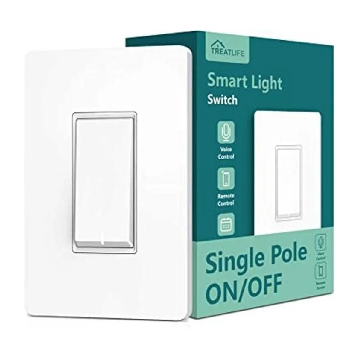 Interruptor de luz inteligente TREATLIFE de un solo polo, requiere cable neutro, interruptor de luz WiFi de 2.4 GHz, funciona con Alexa y Google Home, programación, control remoto, listado ETL