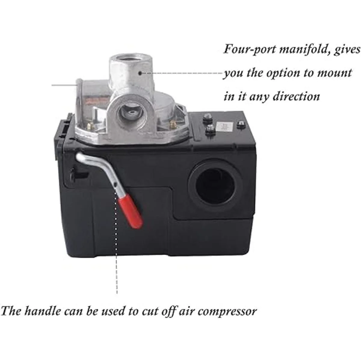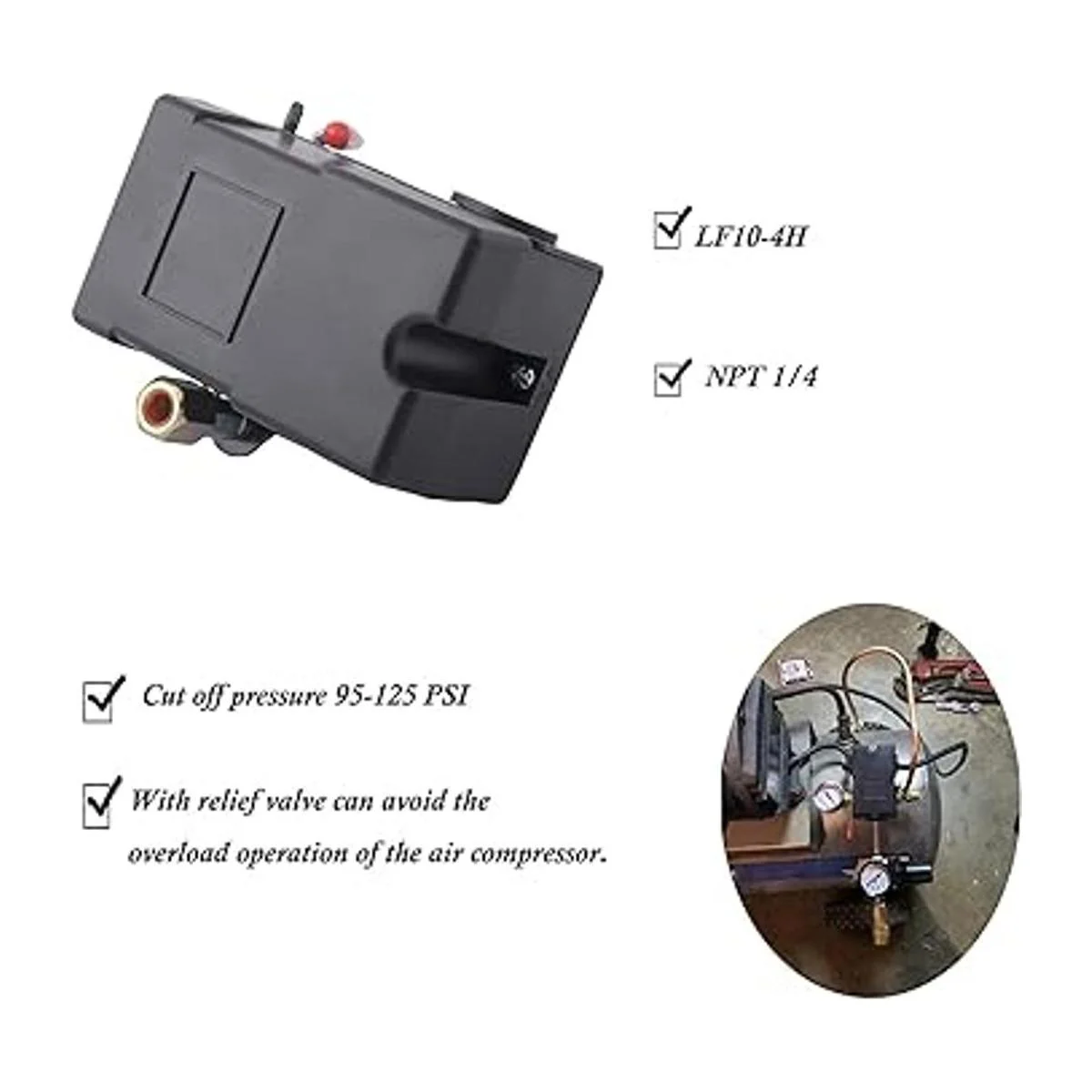 Interruptor de presión LF104H, interruptor de presión de compresor de aire de 4 puertos, control de reemplazo NPT14 95125 PSI 20A