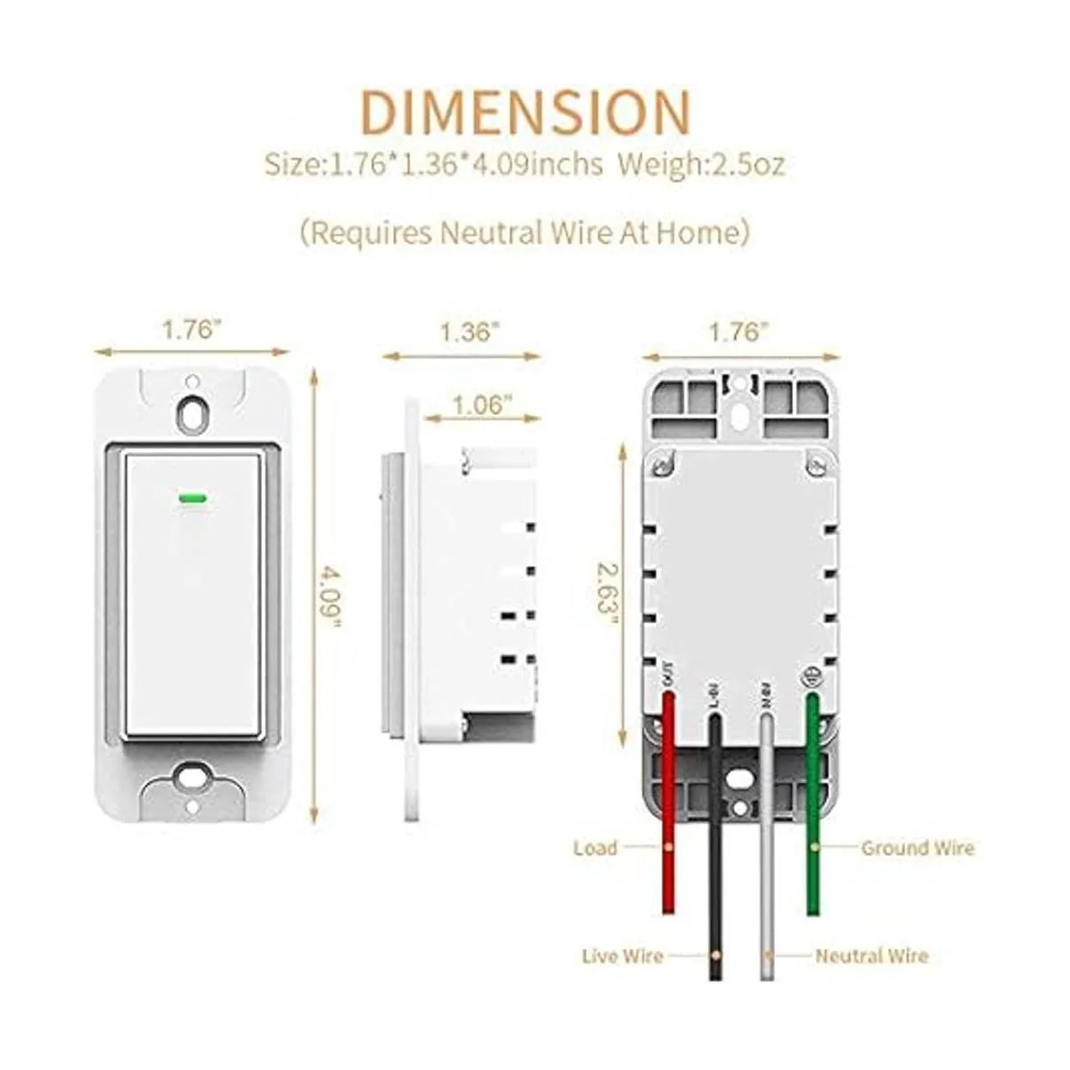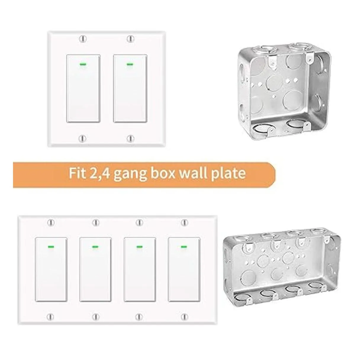 Fácil de instalar: no hay manual de instalación ni configuración difíciles. Solo para instalación de un solo polo. no de 3 vías. Adecuado para caja de interruptores tipo grupo de 1/2/3/4. Nota: se necesita cable neutro. El interruptor de luz inteligente funciona solo con WiFi de 2.4 G, no es compatible con WiFi 5G, no requiere concentrador.