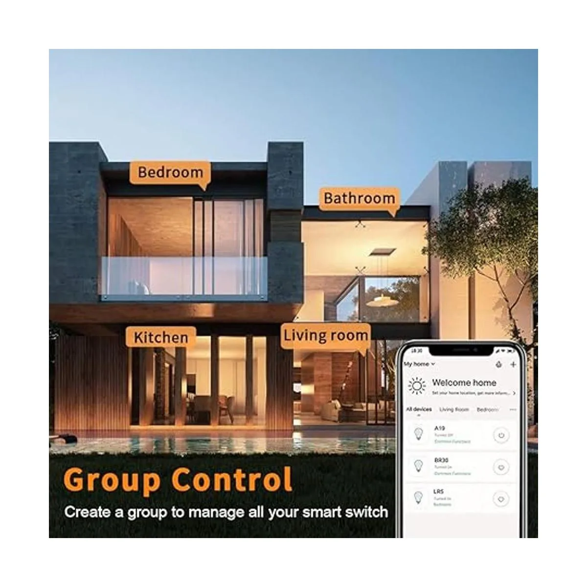 Control remoto: controla la luz desde cualquier lugar con tu smartphone utilizando la aplicación Smart Life, ya sea que estés en tu acogedora cama, en la oficina o de vacaciones. Puedes crear horarios, monitorear el estado de las luces en tiempo real, compartir dispositivos e incluso controlar un grupo de luces en tu casa con un toque de la pantalla del teléfono.