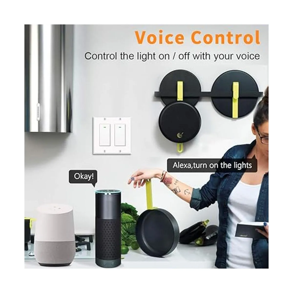 Control de voz: el interruptor inteligente Bekca funciona con Alexa, asistente de Google, control de voz simple hace que tus manos estén libres cuando estás pasando por la puerta de la cocina con tu mano llena de alimentos, durmiendo en tu acogedora cama, sosteniendo a tu bebé, etc.