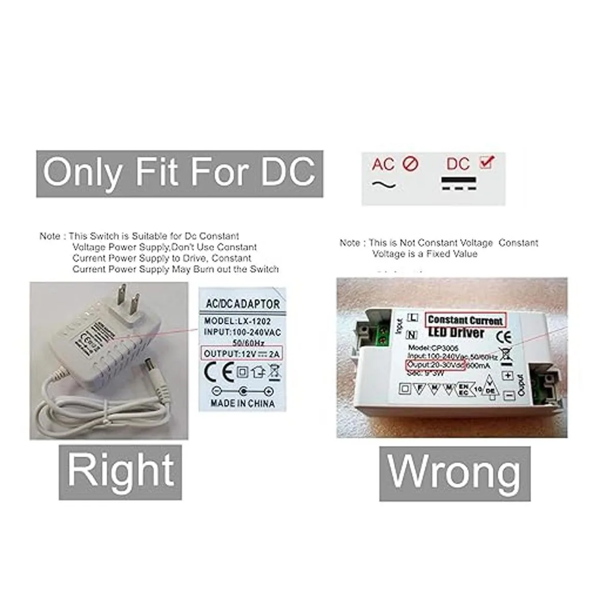 Este interruptor de atenuación LED para luces LED se utiliza a menudo como interruptor Dc12V, también puede ser como interruptores de luz táctil LED para luces LED de 3,6 V a 15 V. Asegúrate de que tu controlador es un controlador de voltaje constante ya que estos interruptores de atenuación se pueden conectar solo a un controlador de voltaje constante. y este interruptor de atenuación LED no se puede conectar al controlador de corriente constante. Puedes comprobar la imagen para ver la diferencia entre el controlador de voltaje constante y el controlador de corriente constante.