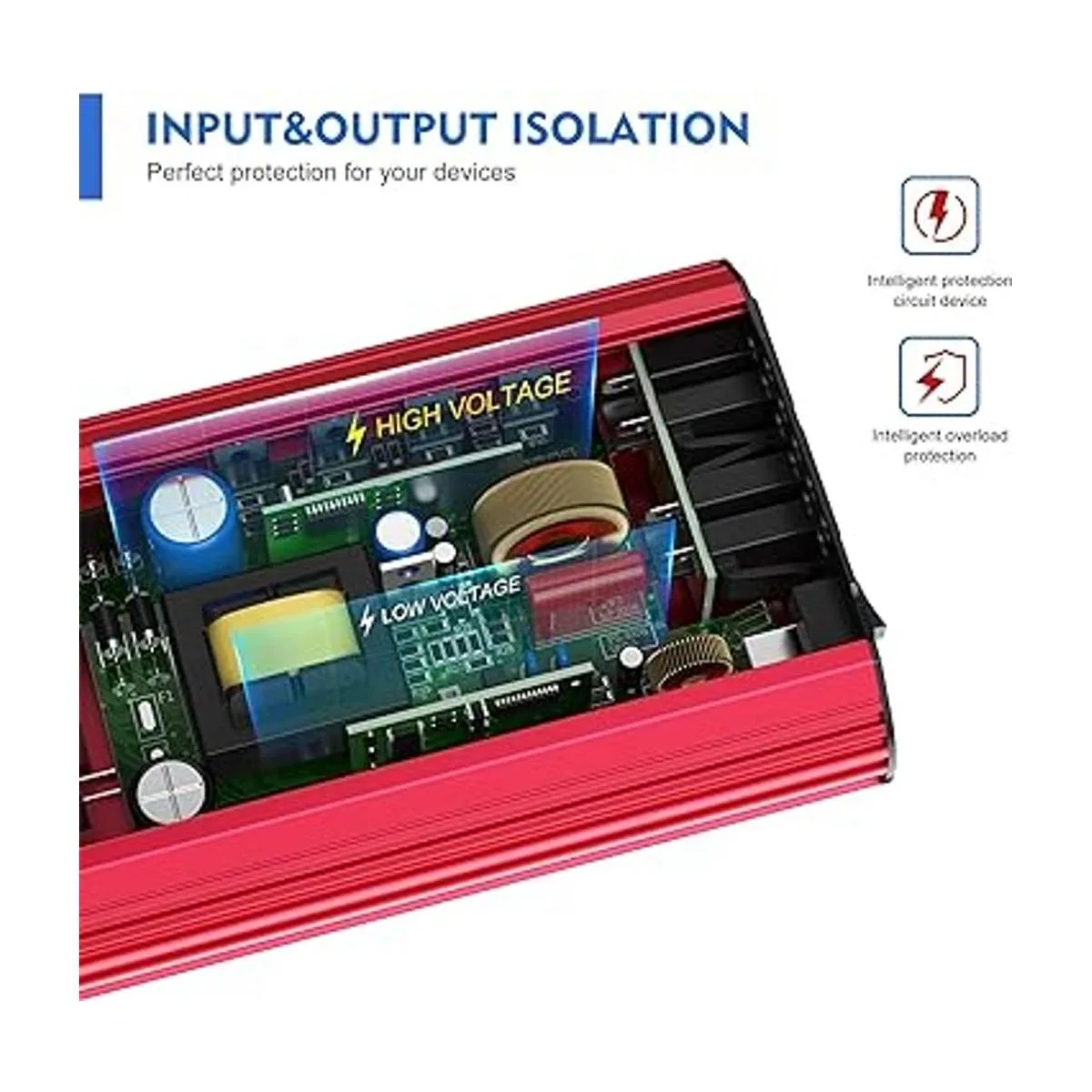 Inversor de corriente de onda sinusoidal pura de 300 vatios CC de 12 voltios a CA 120 voltios adaptador convertidor de coche con puertos USB duales para teléfonos inteligentes, laptops tabletas