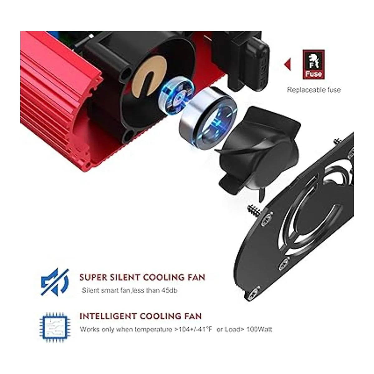 El diseño de ventilador de refrigeración súper silencioso e inteligente hace que este inversor de potencia de 300 W sea más fácil disipar el calor, y el enchufe duradero del encendedor de cigarrillos es fácil de conectar a un enchufe de cigarrillos. El alambre de cobre sólido reduce la corriente de ralentí para ser de solo 0,35 A máx.