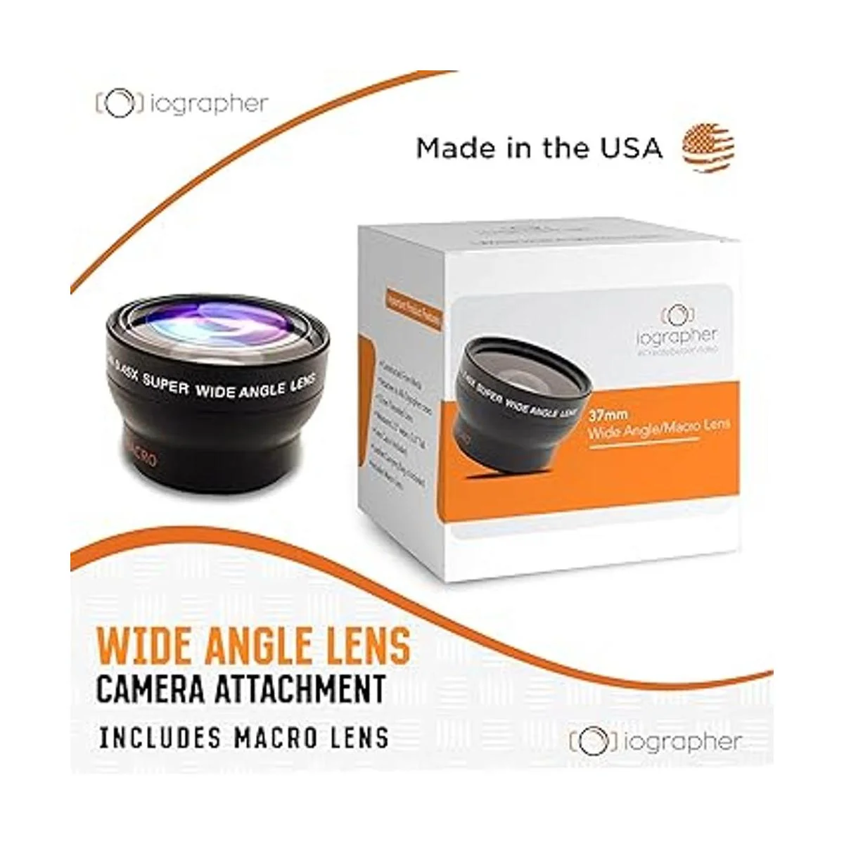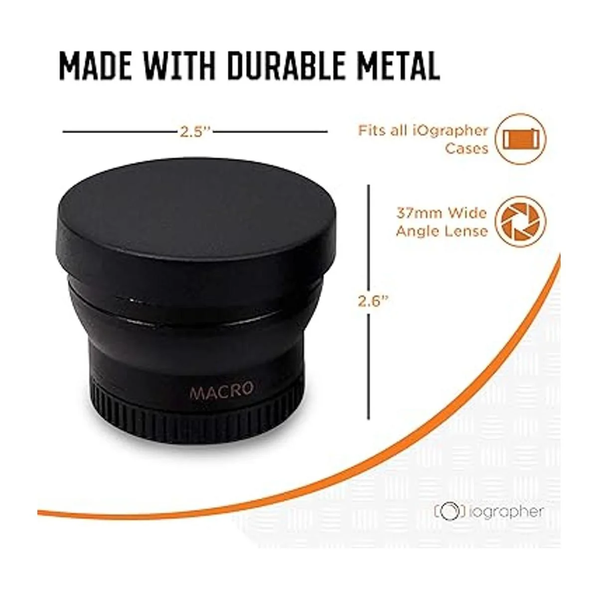 iOgrapher Kit de lente gran angular y macro de 1.457 in, accesorio de lente para smartphone y tableta, actualización a cámara profesional para fotografía para sesiones de fotos y grabación de video con tapa de lente y bolsa de cuero