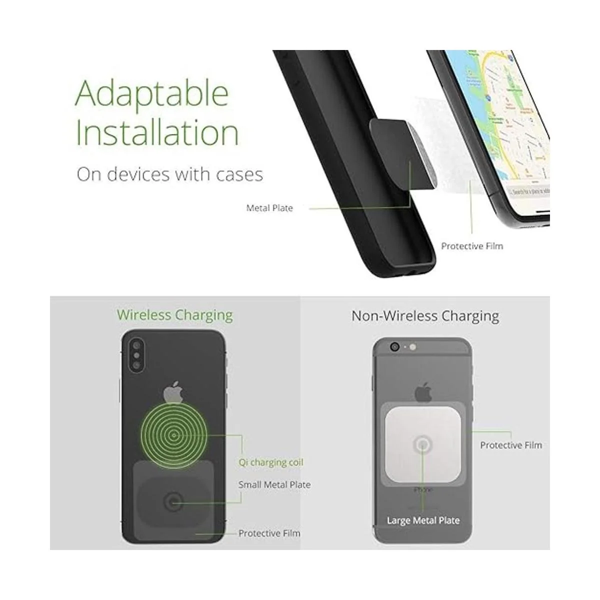 Opciones de placa de metal: proporciona una selección de una placa de metal interior y exterior; cada placa utiliza una cinta adhesiva para fijar a la ubicación de montaje seleccionada y es fácilmente extraíble