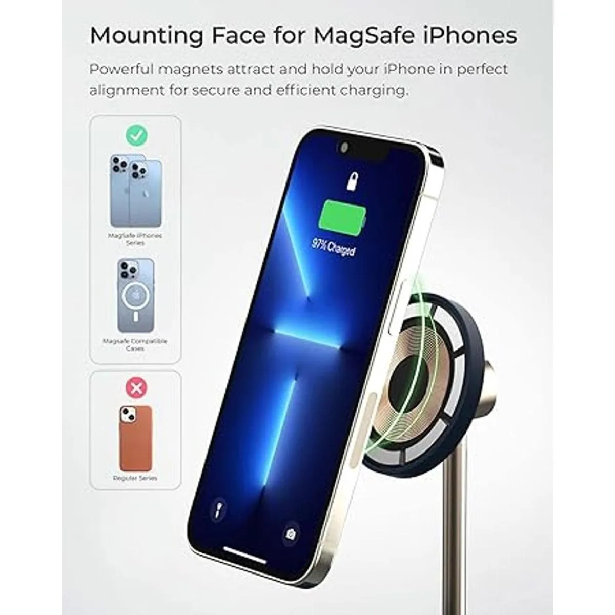 Potente soporte magnético: la cara de montaje magnética ofrece un agarre seguro para tus iPhone y fundas compatibles con MagSafe, ya sea que quieras montarlos en modo vertical u horizontal.