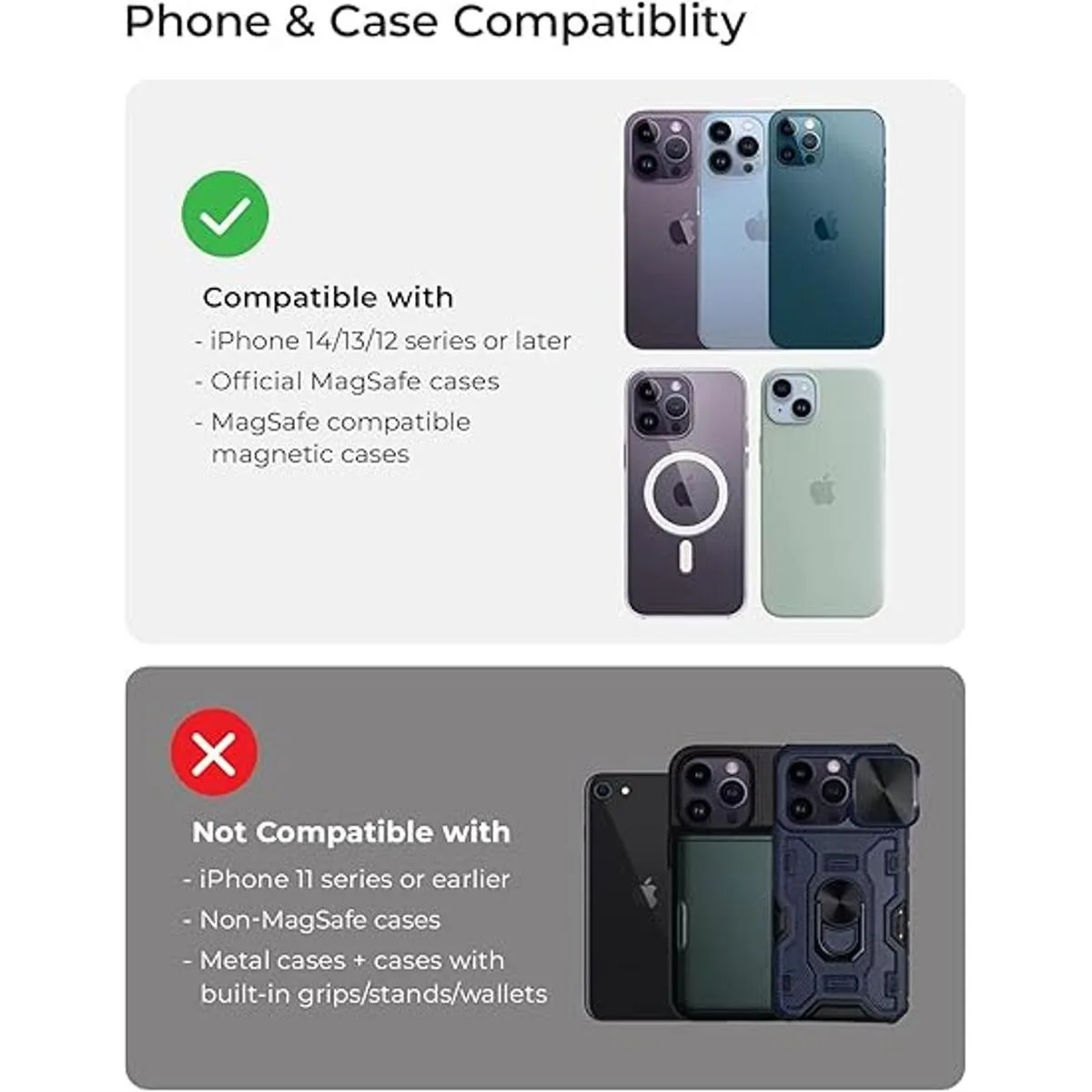 Diseñado solo para fundas de teléfono compatibles con MagSafe y iPhone de la serie MagSafe, incluyendo la serie iPhone12, la serie iPhone 13 y la serie iPhone 14.