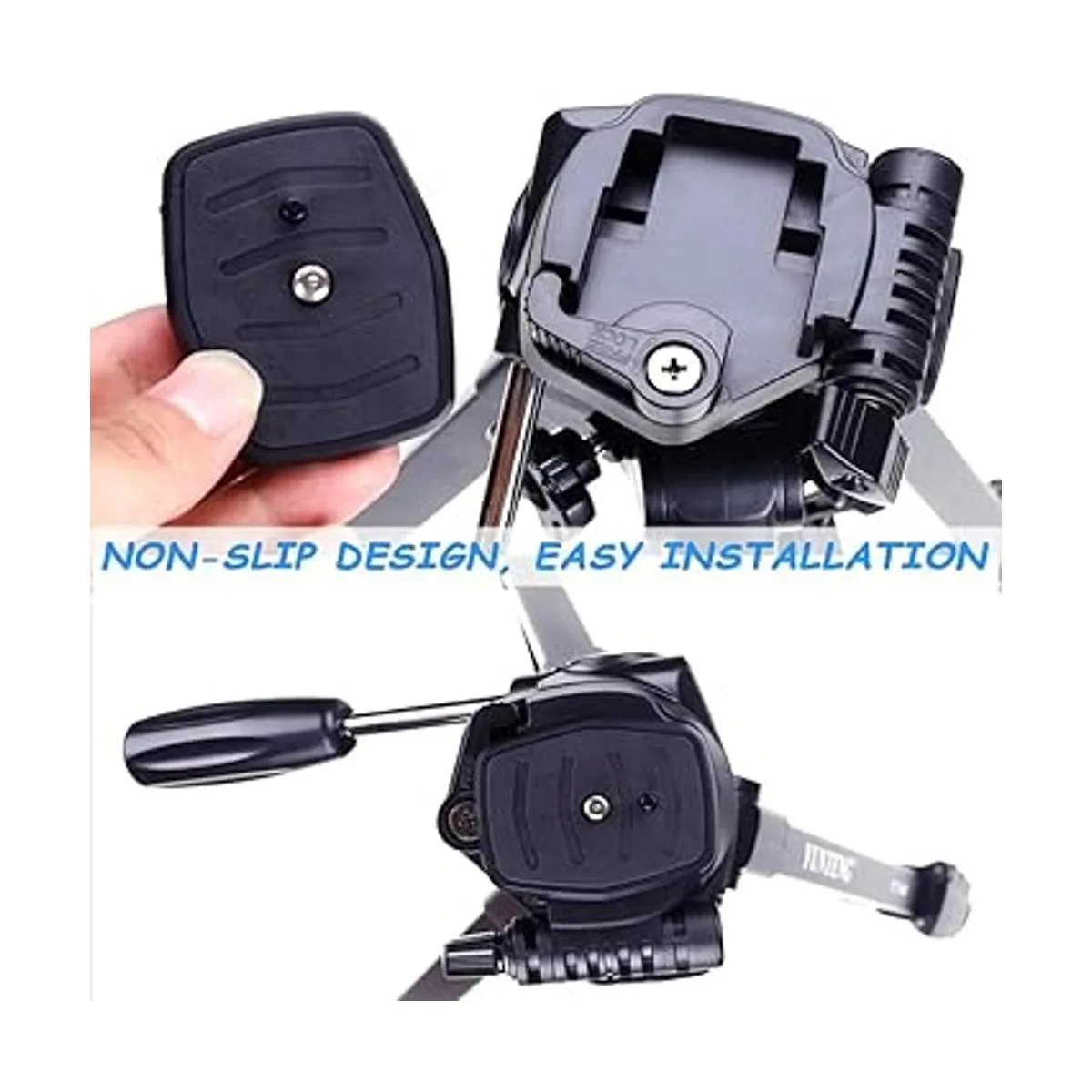Trípode negro de 1.693 in, placas de liberación rápida: longitud 2.559 in x ancho 2.008 in x 0.591 in, tamaño inferior: 1.693 in x 1.693 in. Compatible con CX444, CX888, CX460, CX460mini, CX470, CX470, CX460 X570, X57CX690, DF50, VCTD580RM, VCTD680RM, VCTR640, Torjim 60 pulgadas AX60, 67 pulgadas, Endurax 66 pulgadas ETR66, 67 pulgadas, UBeesize 60 pulgadas TR60, KingJue KingJoy 60 pulgadas VT860, Victiv 72 T72 2, Zomei Q111, Jolican 65 pulgadas H65, Mactrem PT55 trípodes, etc.