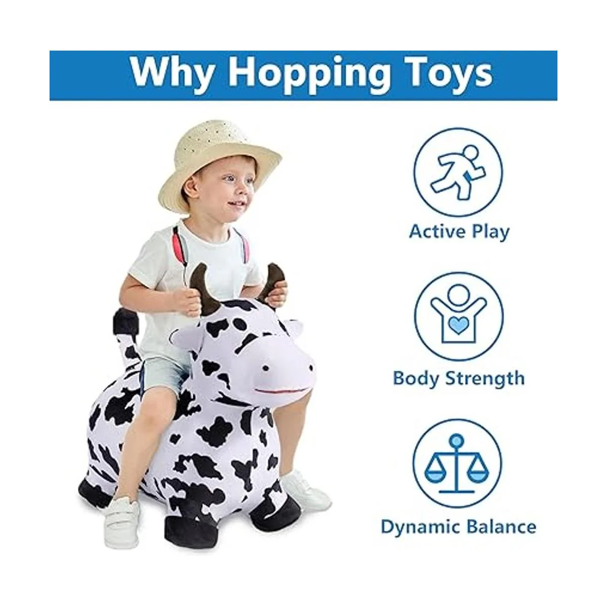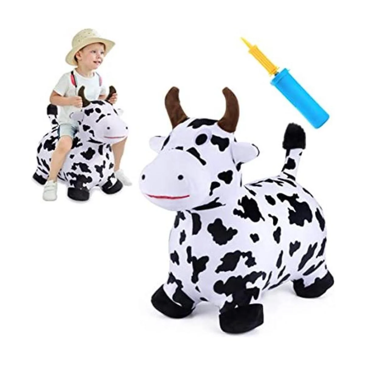 iPlay, iLearn Bouncy Pals Caballo de salto de vaca, paseo al aire libre en juguetes de juego de animales hinchables, felpa inflable cubierta con bomba, regalo de cumpleaños para niños de 18 meses, 2, 3, 4, 5 años, niños y niñas