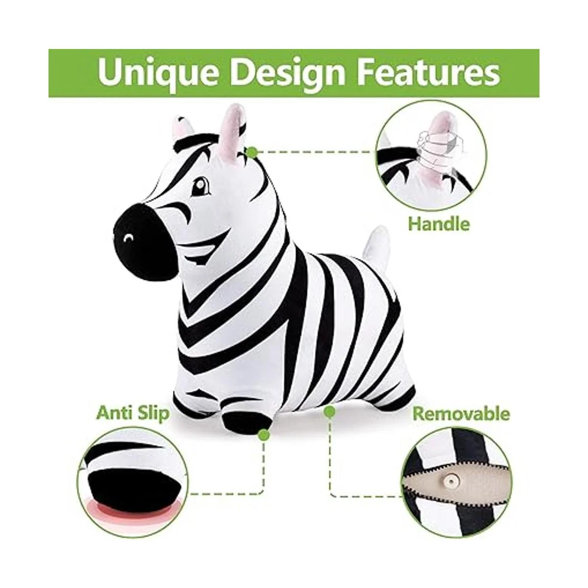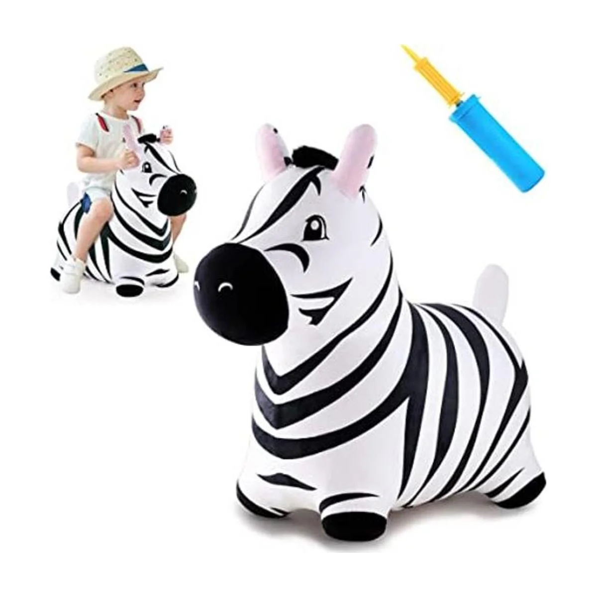 iPlay, iLearn Bouncy Pals Juguete de tolva de cebra, caballo inflable de felpa para niños pequeños con bomba, paseo al aire libre y interior en animales rebotadores, regalo de cumpleaños para niños y niñas de 2, 3, 4, 5 años
