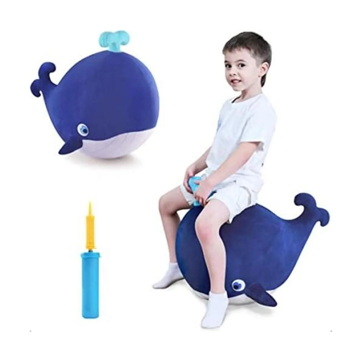 iPlay, iLearn Bouncy Pals Pelota de tolva de ballena para niños, juguete de salto inflable de felpa con bomba, regalo de salto para montar en interiores y exteriores, para niños de 18 meses, 2, 3, 4, 5 años, niño y niña