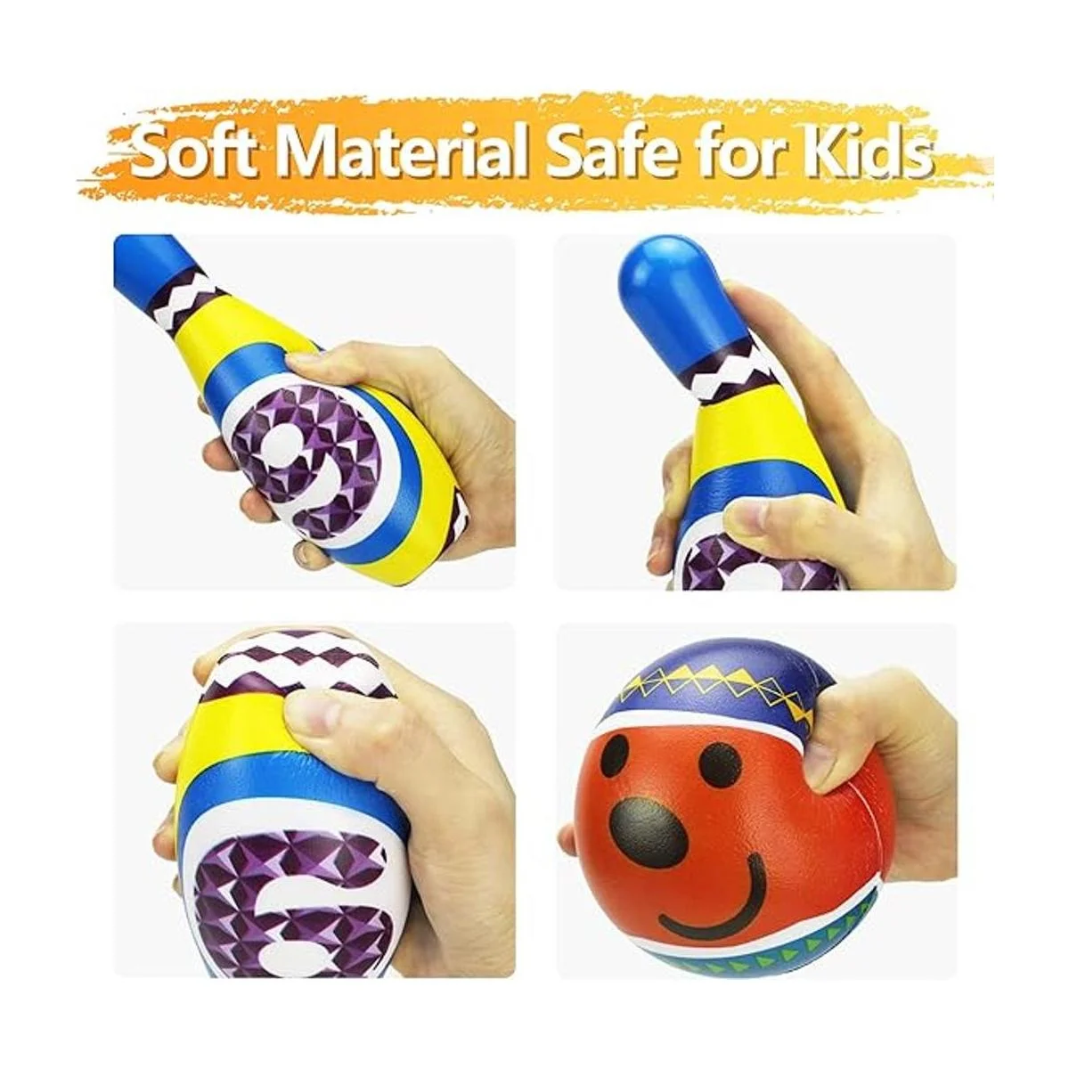 Bolos suaves. Este juego de bolos está hecho de material de espuma de alta calidad. Juega bajo la supervisión de un adulto.