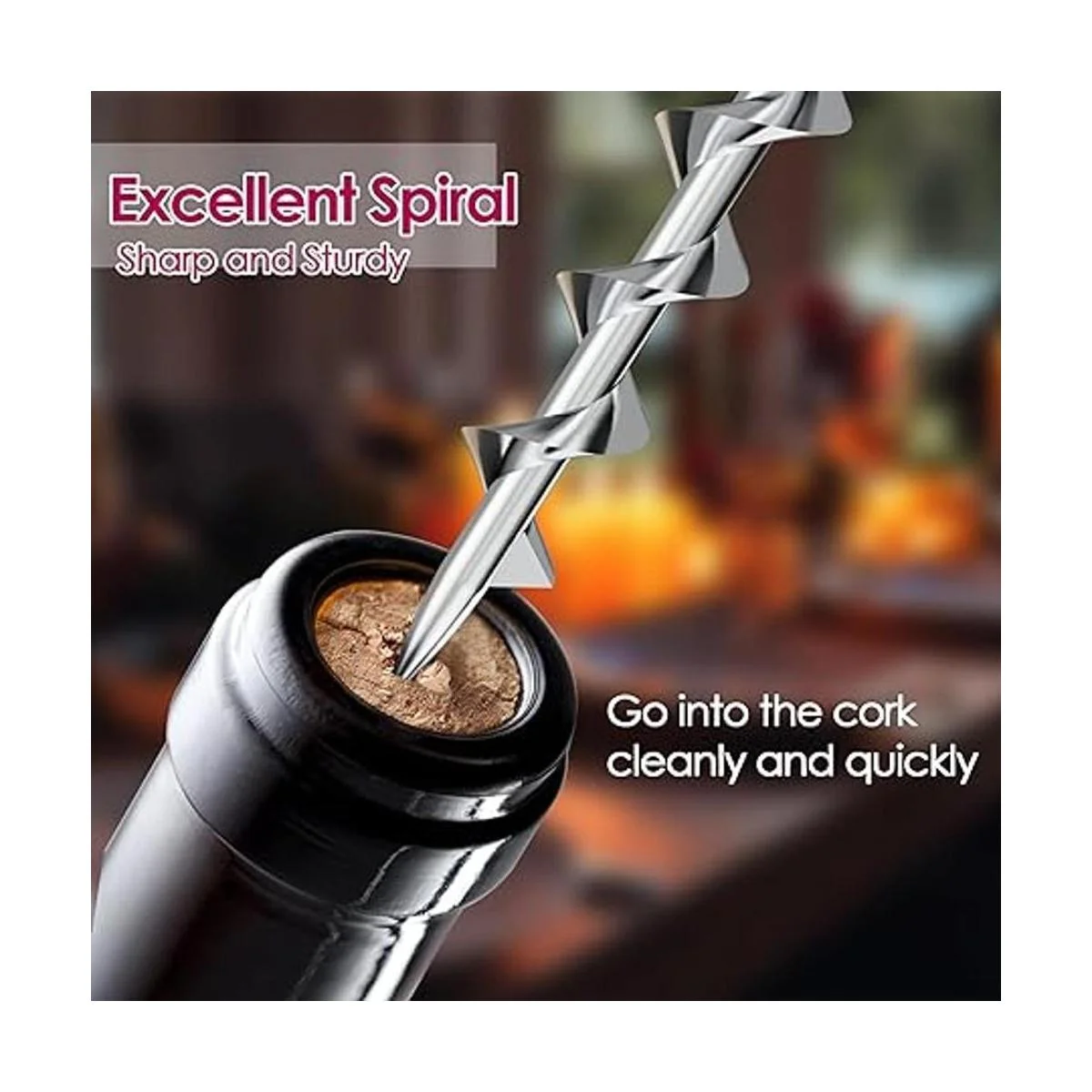 Esta botella de vino abridor está hecha de aleación de zinc cuerpo y sacacorchos de acero inoxidable para la fuerza y la flexibilidad con paneles de tacto suave para mayor comodidad y agarre fácil.