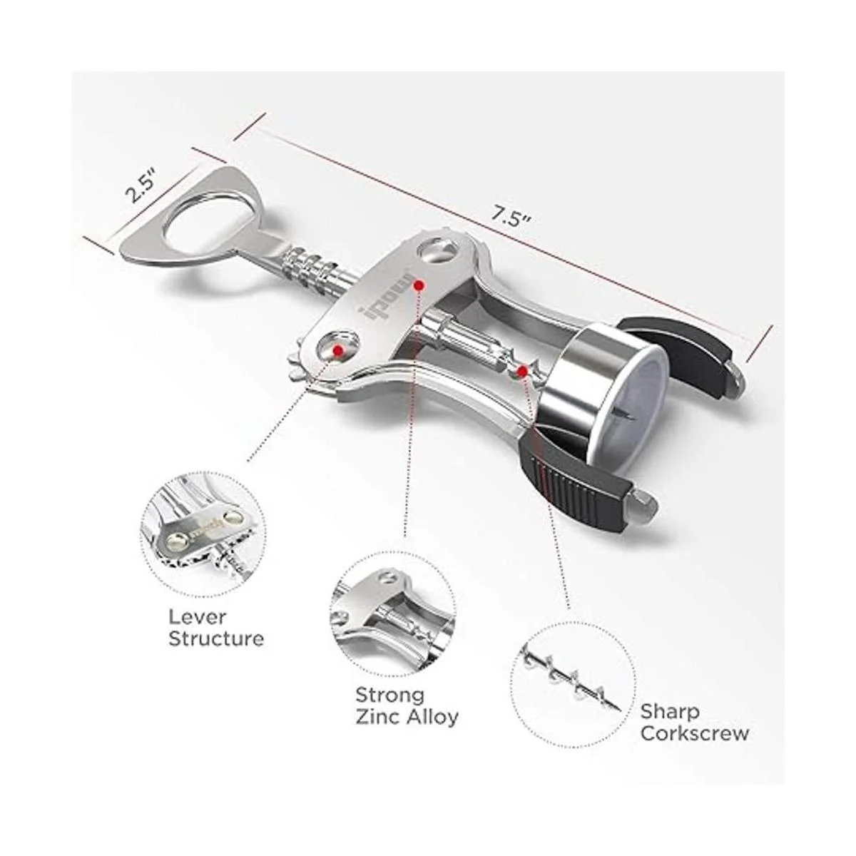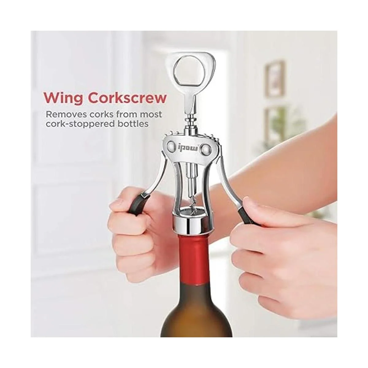 Ipow Abridor sacacorchos de alas de acero inoxidable para vino, botellas de cerveza