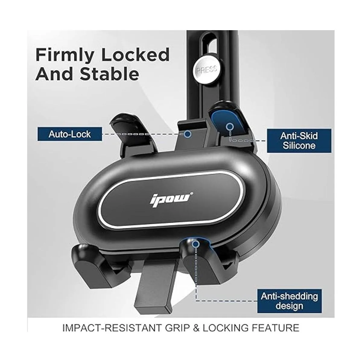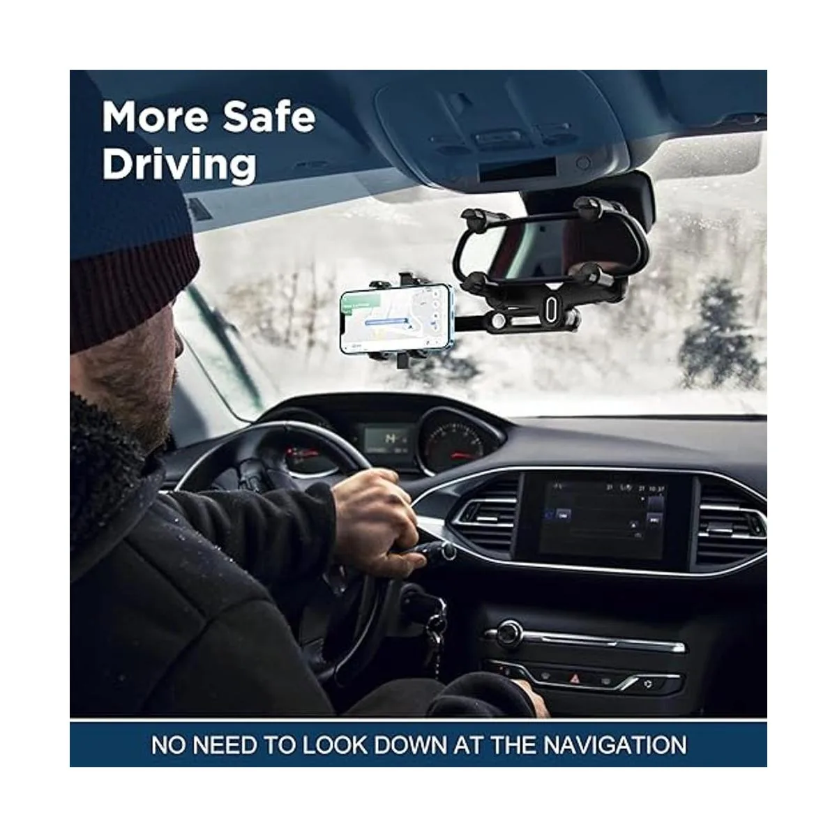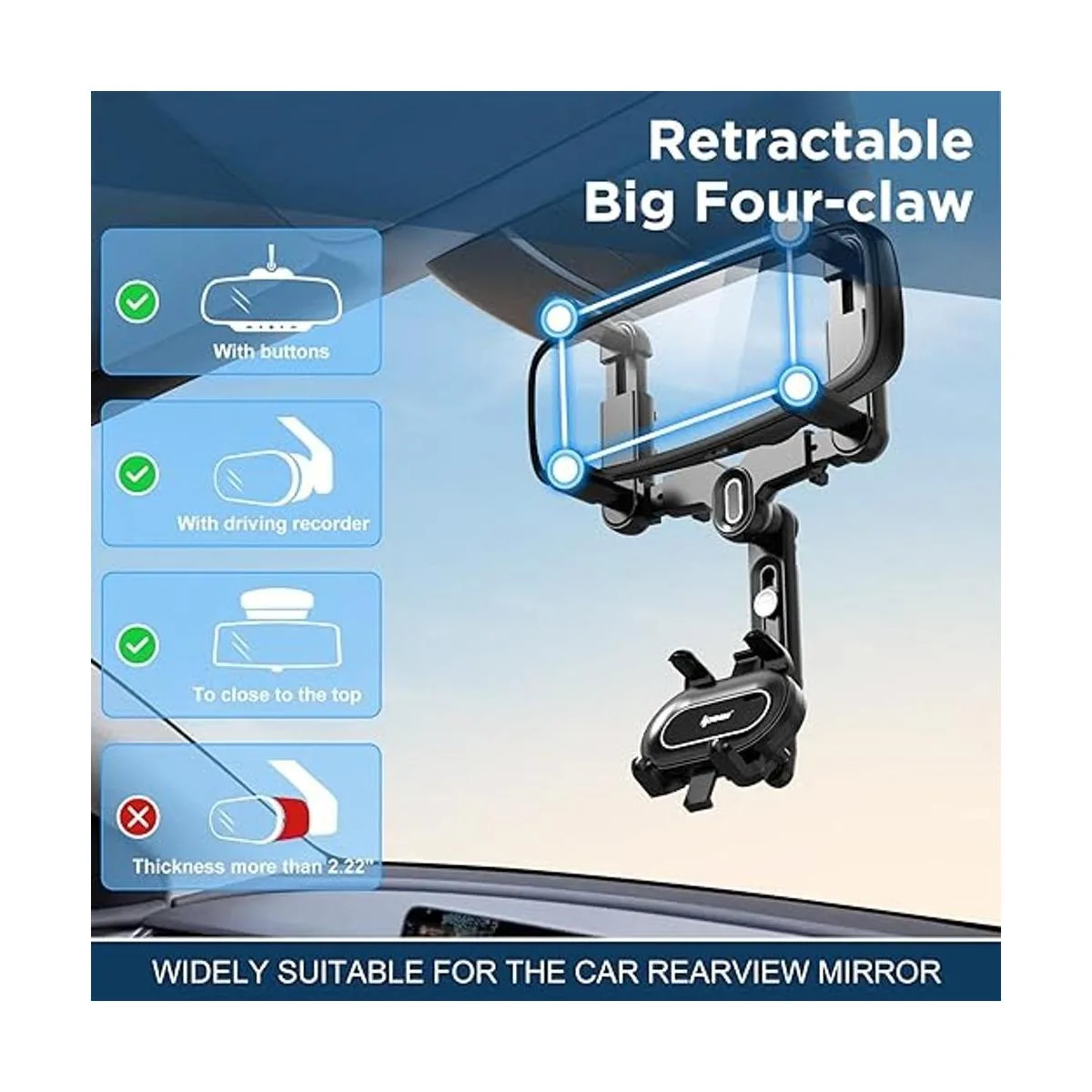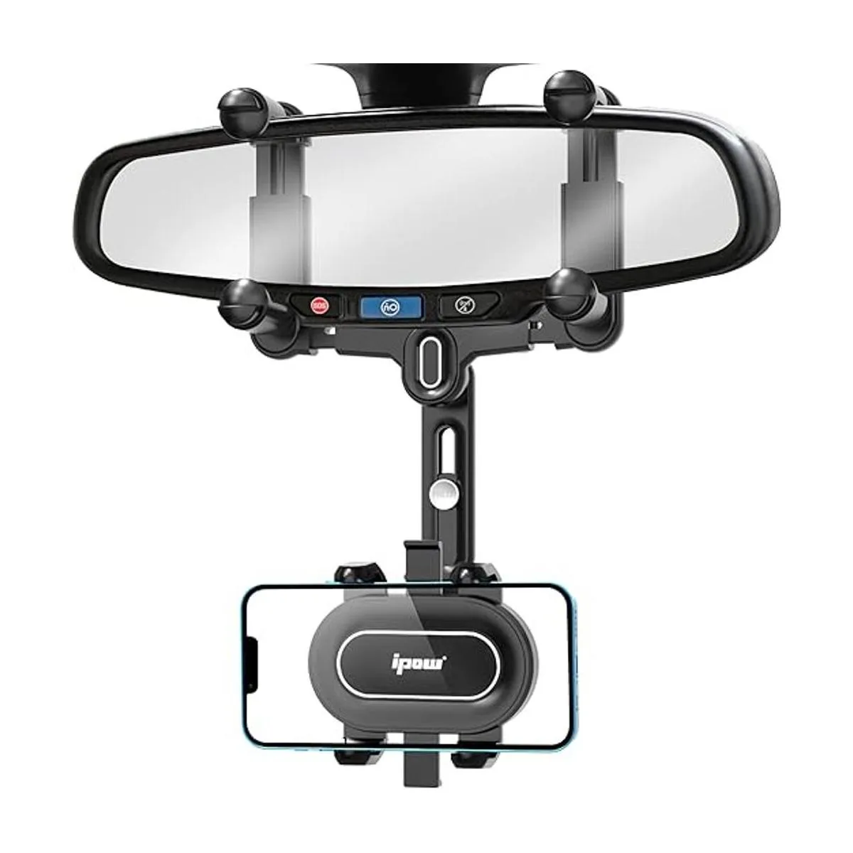 IPOW Soporte grande para teléfono de espejo retrovisor para automóvil, giratorio de 360 y retráctil, actualizado 2022, cuatro esquinas fijo antivibración, diseño multifuncional para todos los teléfonos y todos los espejos retrovisores de automóvil con botón