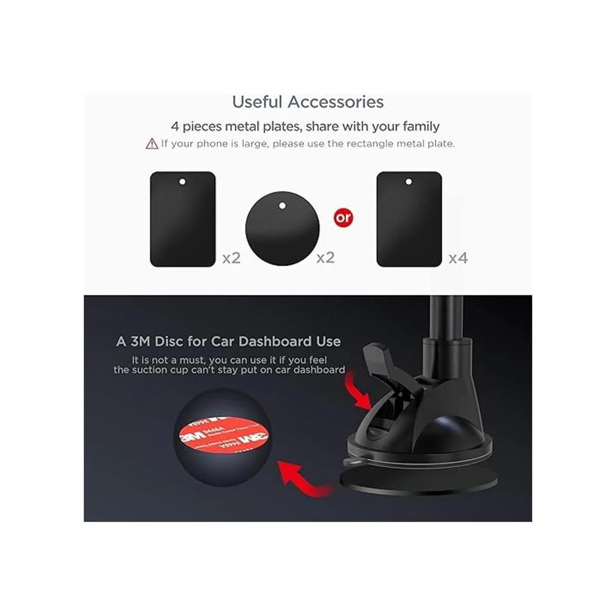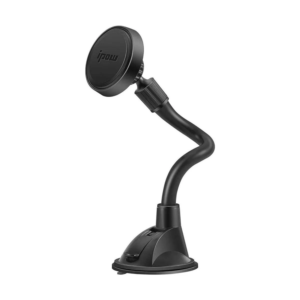 IPOW Soporte magnético universal de brazo largo para parabrisas con 4 placas de metal, brazo de ganso suave y firme y ventosa mejorada