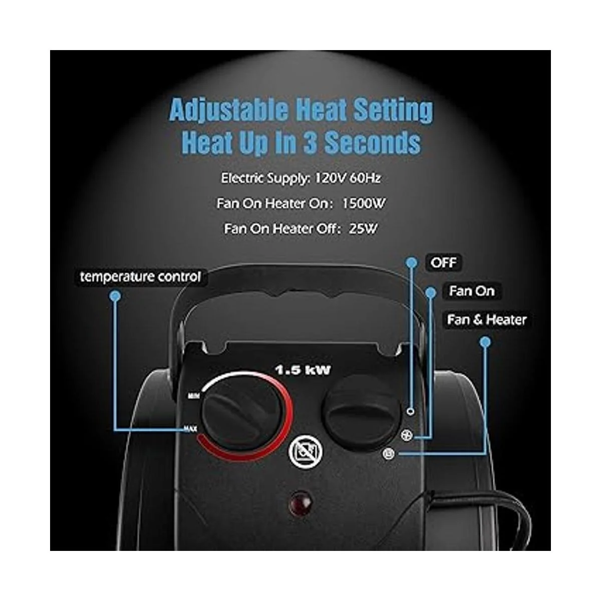 Amplia aplicación: este potente y portátil calentador de espacio es ligero y fácil de llevar, no ocupa espacio adicional. Es conveniente para mover el calentador de ventilador portátil para habitación a cualquier lugar como quieras con un asa de transporte integrada. Con esta función portátil, puedes utilizar este calentador de espacio para garaje, cocina, sala de estar, talleres, sótanos, cobertizos, etc. Elige los calentadores para ti y tu familia, te sorprenderá su maravilloso rendimiento.