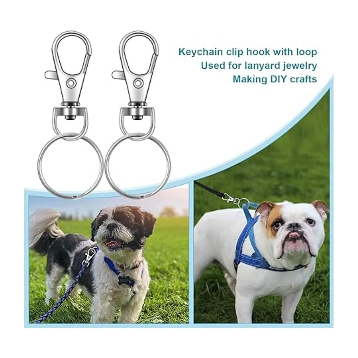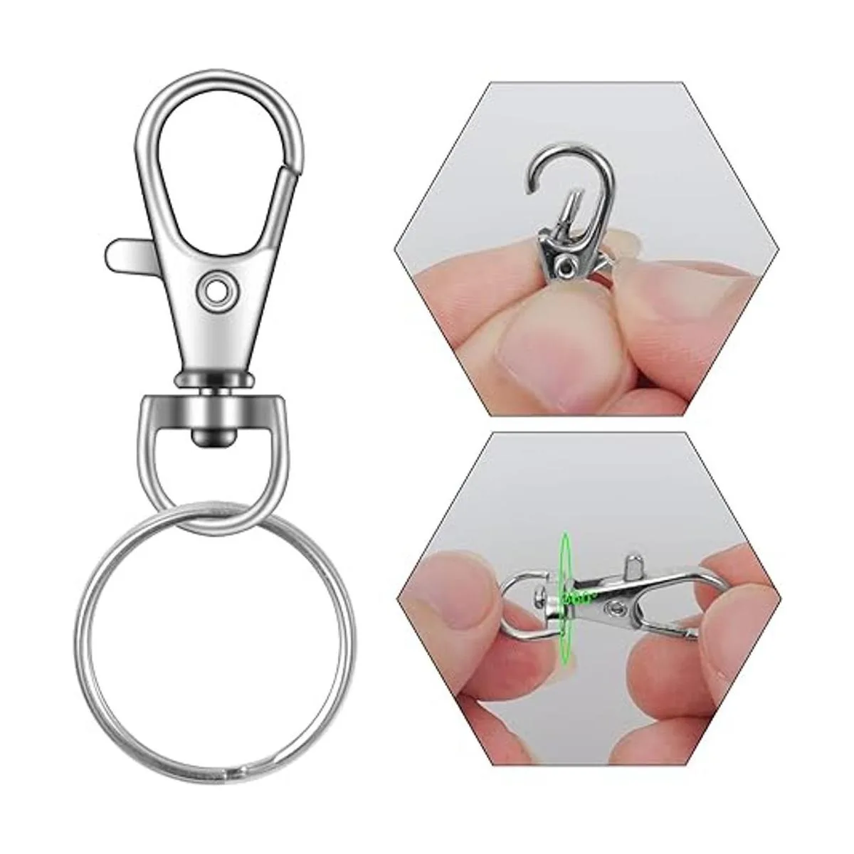 IPXEAD 100 ganchos de clip para llavero, cierre giratorio, gancho a presión, ganchos para llavero para llavero, manualidades, plata